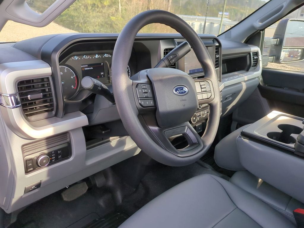 2025 Oxford White 2025 Ford F-250SD XL RWD Power Stroke 6.7L V8 DI 32V OHV Turbodiesel GVWR: 10,000 Lb Payload Package, Order Code 600A (17" Argent Painted Steel Wheels, HD Vinyl 40/20/40 Split Bench Seat, Radio: AM/FM Stereo with MP3 Player, and SYNC 4), XL Chrome Package (Bright Chrome Hub Covers and Center Ornaments, Chrome Front Bumper, Chrome Rear Step Bumper, and Halogen Fog Lamps), 190 Amp Alternator, 4 Speakers, 4-Wheel Disc Brakes, ABS brakes, Air Conditioning, AM/FM radio, Brake assist, Compass, Delay-off headlights, Dual AGM 68 AH Battery, Dual front impact airbags, Dual front side impact airbags, Electronic Stability Control, Emergency communication system: SYNC 4 911 Assist, Exterior Parking Camera Rear, Front anti-roll bar, Front Center Armrest w/Storage, Front reading lights, Front wheel independent suspension, Fully automatic headlights, Heated door mirrors, Illuminated entry, Interior Work Surface, Internet access capable: FordPass Connect 5G, Low tire pressure warning, Outside temperature display, Overhead airbag, Overhead console, Panic alarm, Passenger cancellable airbag, Passenger vanity mirror, Power door mirrors, Power steering, Power windows, Rear step bumper, Remote keyless entry, Security system, Speed control, Steering wheel mounted audio controls, Tachometer, Telescoping steering wheel, Tilt steering wheel, Traction control, Trip computer, Turn signal indicator mirrors, Upfitter Switches (6), and Variably intermittent wipers Courtesy Ford and Lincoln of Rome 101 Hwy 411 E Rome, Ga 30161 ROMEFORDLINC.COM 706.235.4453. Price includes dealer added accessories.