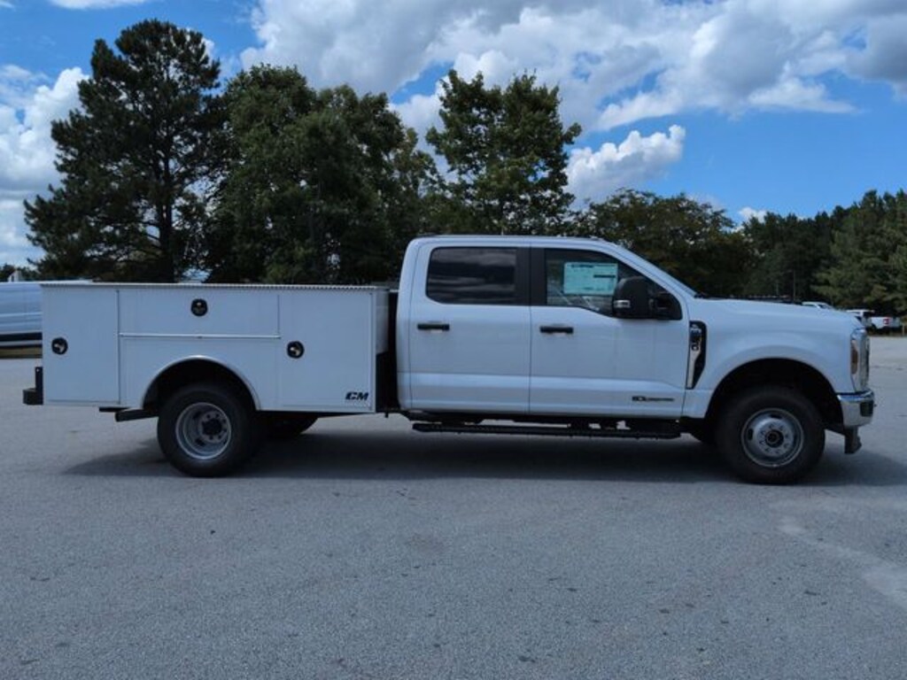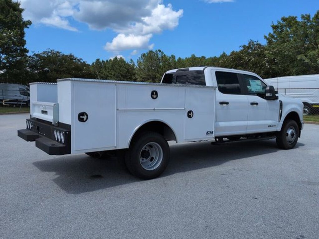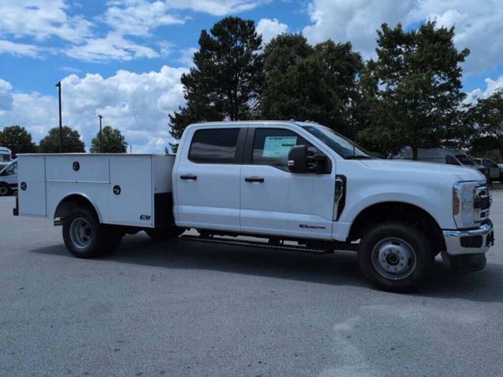 This 2025 Ford F-350SD XL in Oxford White features: Preferred Equipment Package, 4D Crew Cab/Chassis, Power Stroke 6.7L V8 DI 32V OHV Turbodiesel, 10-Speed Automatic, 4WD, Bright Grille, Chrome Front Bumper, Dual 68 AH/65 AGM Battery, Dual Diesel Fuel Tanks, Dual rear wheels, Engine Block Heater, GVWR: 14,000 lb Payload Package, Halogen Fog Lamps, Limited Slip w/4.10 Axle Ratio, Order Code 640A, Privacy Glass w/Power Sliding Rear Glass, Rear View Camera & Prep Kit, Rear Window Defroster, Remote Start, Variably intermittent wipers, XL Chrome Package. GVWR: 14,000 lb Payload Package, Order Code 640A, XL Chrome Package (Bright Grille, Chrome Front Bumper, Halogen Fog Lamps, Privacy Glass w/Power Sliding Rear Glass, Rear Window Defroster, and Remote Start), 4D Crew Cab/Chassis, Power Stroke 6.7L V8 DI 32V OHV Turbodiesel, 10-Speed Automatic, 4WD, Dual 68 AH/65 AGM Battery, Dual Diesel Fuel Tanks, Dual rear wheels, Engine Block Heater, Limited Slip w/4.10 Axle Ratio, Rear View Camera & Prep Kit, Variably intermittent wipers, 4-Ton Hydraulic Jack, 4-Wheel Disc Brakes, ABS brakes, Air Conditioning, Brake assist, Compass, Delay-off headlights, Dual front impact airbags, Dual front side impact airbags, Emergency communication system: SYNC 4 911 Assist, Front anti-roll bar, Front License Plate Bracket, Front reading lights, Fully automatic headlights, Heated door mirrors, Illuminated entry, Low tire pressure warning, Outside temperature display, Overhead airbag, Overhead console, Panic alarm, Passenger vanity mirror, Platform Running Boards, Power door mirrors, Power steering, Power windows, Rear anti-roll bar, Rear reading lights, Remote keyless entry, Security system, Speed control, Split folding rear seat, Steering wheel mounted audio controls, Tachometer, Telescoping steering wheel, Tilt steering wheel, Traction control, Trip computer, and Turn signal indicator mirrors.