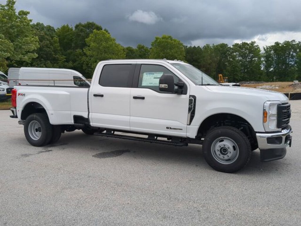 2025 Oxford White 2025 Ford F-350SD XL DRW XL 4D Crew Cab 4WD Power Stroke 6.7L V8 DI 32V OHV Turbodiesel 5G WiFi Hotspot Telematics, 8" Color Touchscreen, Off Road Package, Power Sliding Rear Window, Skid Plate Package, Tow Package, Trailer Package, 4D Crew Cab, Power Stroke 6.7L V8 DI 32V OHV Turbodiesel, 10-Speed Automatic, 4WD, Automatic High Beam, Chrome Front Bumper, Chrome Rear Step Bumper, Dual 68 AH AGM 750 CCA Batteries, Engine Block Heater, FX4 Off-Road Package, GVWR: 14,000 lb Payload Package, Halogen Fog Lamps, Hill Descent Control, Limited Slip w/4.10 Axle Ratio, Off-Road Specifically Tuned Shock Absorbers, Order Code 620A, Pre-Collision Assist, Unique FX4 Off-Road Box Decal, XL Chrome Package, XL Driver Assist Package. FX4 Off-Road Package (Hill Descent Control, Off-Road Specifically Tuned Shock Absorbers, and Unique FX4 Off-Road Box Decal), GVWR: 14,000 lb Payload Package, Order Code 620A, XL Chrome Package (Chrome Front Bumper, Chrome Rear Step Bumper, and Halogen Fog Lamps), XL Driver Assist Package (Automatic High Beam and Pre-Collision Assist), 4D Crew Cab, Power Stroke 6.7L V8 DI 32V OHV Turbodiesel, 10-Speed Automatic, 4WD, Dual 68 AH AGM 750 CCA Batteries, Engine Block Heater, Limited Slip w/4.10 Axle Ratio, 250 Amp Alternator, 4-Wheel Disc Brakes, ABS brakes, Air Conditioning, Brake assist, Compass, Delay-off headlights, Dual front impact airbags, Dual front side impact airbags, Dual rear wheels, Electronic Stability Control, Emergency communication system: SYNC 4 911 Assist, Front anti-roll bar, Front License Plate Bracket, Front reading lights, Fully automatic headlights, Heated door mirrors, Illuminated entry, Low tire pressure warning, Outside temperature display, Overhead airbag, Overhead console, Panic alarm, Passenger vanity mirror, Power door mirrors, Power steering, Power windows, Rear anti-roll bar, Rear reading lights, Rear step bumper, Remote keyless entry, Security system, Speed control, Split folding rear seat, Steering wheel mounted audio controls, Tachometer, Telescoping steering wheel, Tilt steering wheel, Traction control, Trip computer, Turn signal indicator mirrors, Upfitter Switches (6), and Variably intermittent wipers.