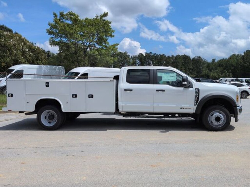 2025 Oxford White 2025 Ford F-450SD XL DRW XL 4D Crew Cab/Chassis RWD Power Stroke 6.7L V8 DI 32V OHV Turbodiesel 4D Crew Cab/Chassis, Power Stroke 6.7L V8 DI 32V OHV Turbodiesel, 10-Speed Automatic, RWD, 5G WiFi Hotspot Telematics, 8" Color Touchscreen, Bright Grille, Chrome Front Bumper, GVWR: 16,500 lb Payload Package, Halogen Fog Lamps, Limited Slip w/4.10 Axle Ratio, Order Code 650A, Power Sliding Rear Window, Preferred Equipment Package, Privacy Glass w/Power Sliding Rear Glass, Rear Window Defroster, Remote Start, Remote Start, Tow Package, Trailer Package, XL Chrome Package. GVWR: 16,500 lb Payload Package, Order Code 650A, XL Chrome Package (Bright Grille, Chrome Front Bumper, Halogen Fog Lamps, Privacy Glass w/Power Sliding Rear Glass, Rear Window Defroster, and Remote Start), 4D Crew Cab/Chassis, Power Stroke 6.7L V8 DI 32V OHV Turbodiesel, 10-Speed Automatic, RWD, 5G WiFi Hotspot Telematics, 8" Color Touchscreen, Limited Slip w/4.10 Axle Ratio, Power Sliding Rear Window, Preferred Equipment Package, Remote Start, Tow Package, Trailer Package, 190 Amp Alternator, 4-Wheel Disc Brakes, 6 Speakers, 6-Ton Hydraulic Jack, ABS brakes, Air Conditioning, AM/FM radio, AM/FM Stereo w/MP3 Player, Brake assist, Center High-Mounted Stop Lamp (CHMSL), Compass, Delay-off headlights, Dual 68 AH/65 AGM Battery, Dual front impact airbags, Dual front side impact airbags, Dual rear wheels, Emergency communication system: SYNC 4 911 Assist, Engine Block Heater, Front anti-roll bar, Front Center Armrest w/Storage, Front License Plate Bracket, Front reading lights, Fully automatic headlights, HD Vinyl 40/20/40 Split Bench Seat, Heated door mirrors, Illuminated entry, Outside temperature display, Overhead airbag, Overhead console, Panic alarm, Passenger vanity mirror, Platform Running Boards, Power door mirrors, Power steering, Power windows, Rear anti-roll bar, Rear reading lights, Rear View Camera & Prep Kit, Remote keyless entry, Security system, Speed control, Split folding rear seat, Steering wheel mounted audio controls, SYNC 4 Communication & Entertainment System, Tachometer, Telescoping steering wheel, Tilt steering wheel, Traction control, Trailer Brake Controller, Trip computer, Turn signal indicator mirrors, Variably intermittent wipers, and Wheels: 19.5" x 6" Argent Painted Steel.