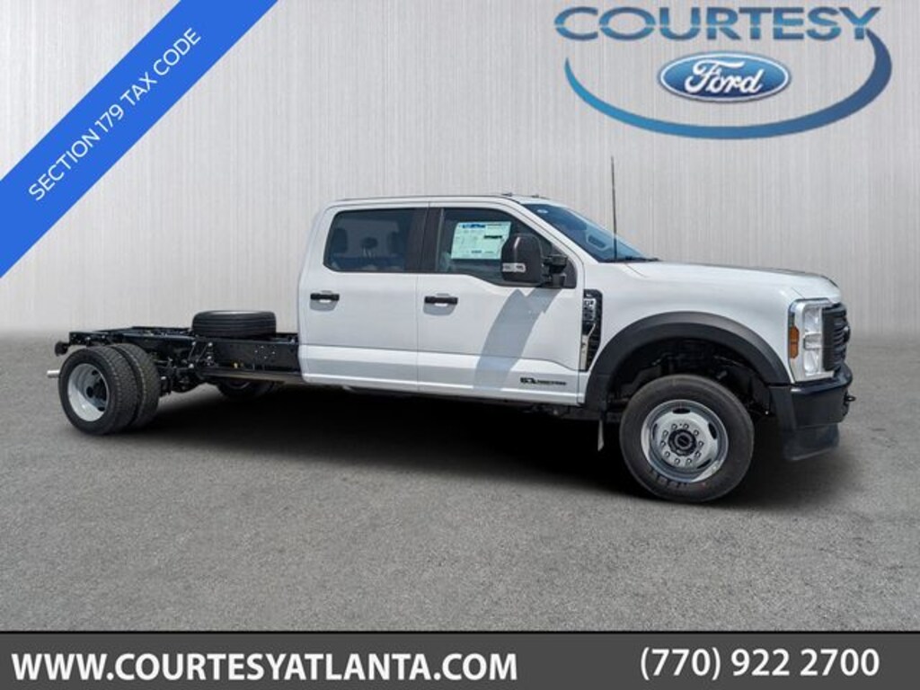 2025 Oxford White 2025 Ford F-550SD XL DRW XL 4D Crew Cab/Chassis 4WD Power Stroke 6.7L V8 DI 32V OHV Turbodiesel 4D Crew Cab/Chassis, Power Stroke 6.7L V8 DI 32V OHV Turbodiesel, 10-Speed Automatic, 4WD, 190 Amp Alternator, 5G WiFi Hotspot Telematics, 8" Color Touchscreen, Dual 68 AH/65 AGM Battery, Dual Diesel Fuel Tanks, Dual rear wheels, Engine Block Heater, GVWR: 19,500 lb Payload Plus Upgrade Package 1, High Capacity Trailer Tow Package, Hill Start Assist, Limited Slip w/4.30 Axle Ratio, Order Code 660A, Rear View Camera & Prep Kit, Tow Package, Trailer Package. GVWR: 19,500 lb Payload Plus Upgrade Package 1, High Capacity Trailer Tow Package, Order Code 660A, 4D Crew Cab/Chassis, Power Stroke 6.7L V8 DI 32V OHV Turbodiesel, 10-Speed Automatic, 4WD, 190 Amp Alternator, 5G WiFi Hotspot Telematics, 8" Color Touchscreen, Dual 68 AH/65 AGM Battery, Dual Diesel Fuel Tanks, Dual rear wheels, Engine Block Heater, Hill Start Assist, Limited Slip w/4.30 Axle Ratio, Rear View Camera & Prep Kit, Tow Package, Trailer Package, 4-Wheel Disc Brakes, 6 Speakers, 6-Ton Hydraulic Jack, ABS brakes, Air Conditioning, AM/FM radio, Brake assist, Compass, Delay-off headlights, Dual front impact airbags, Dual front side impact airbags, Emergency communication system: SYNC 4 911 Assist, Front anti-roll bar, Front Center Armrest w/Storage, Front reading lights, Fully automatic headlights, HD Vinyl 40/20/40 Split Bench Seat, Heated door mirrors, Illuminated entry, Outside temperature display, Overhead airbag, Overhead console, Panic alarm, Passenger vanity mirror, Power door mirrors, Power steering, Power windows, Rear anti-roll bar, Rear reading lights, Remote keyless entry, Security system, Speed control, Split folding rear seat, Steering wheel mounted audio controls, SYNC 4 Communication & Entertainment System, Tachometer, Telescoping steering wheel, Tilt steering wheel, Traction control, Trip computer, Turn signal indicator mirrors, Variably intermittent wipers, and Wheels: 19.5" x 6" Argent Painted Steel.