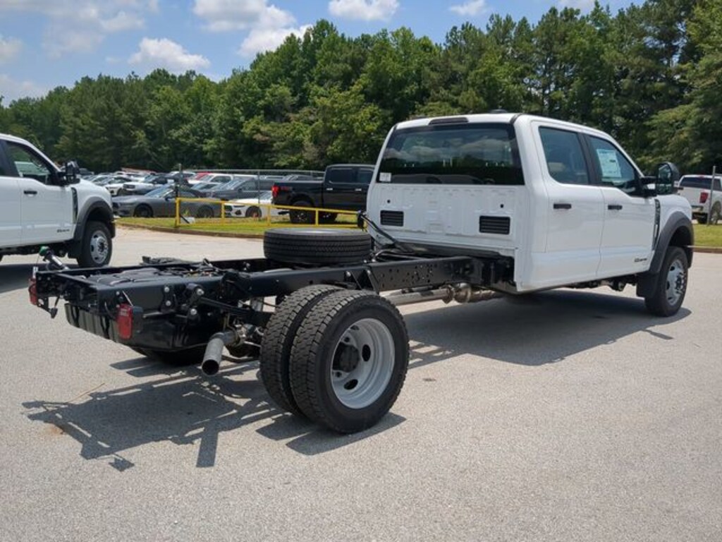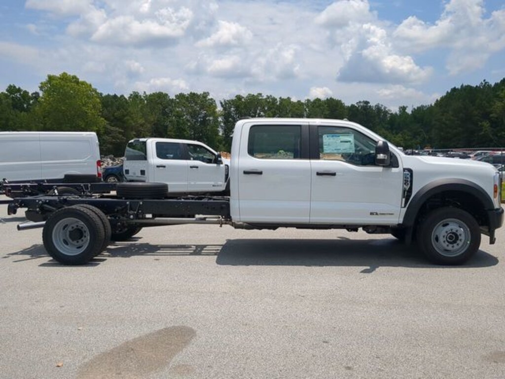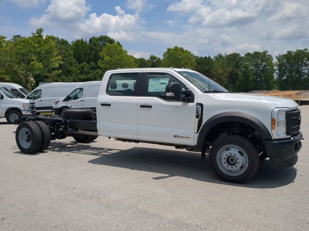 2025 Oxford White 2025 Ford F-550SD XL DRW XL 4D Crew Cab/Chassis 4WD Power Stroke 6.7L V8 DI 32V OHV Turbodiesel 5G WiFi Hotspot Telematics, 8" Color Touchscreen, 4D Crew Cab/Chassis, Power Stroke 6.7L V8 DI 32V OHV Turbodiesel, 10-Speed Automatic, 4WD, 410 Amp Dual Alternators, Dual 68 AH/65 AGM Battery, Dual Diesel Fuel Tanks, Engine Block Heater, GVWR: 19,500 lb Payload Plus Upgrade Package 1, High Capacity Trailer Tow Package, Limited Slip w/4.30 Axle Ratio, Order Code 660A. GVWR: 19,500 lb Payload Plus Upgrade Package 1, High Capacity Trailer Tow Package, Order Code 660A, 4D Crew Cab/Chassis, Power Stroke 6.7L V8 DI 32V OHV Turbodiesel, 10-Speed Automatic, 4WD, 410 Amp Dual Alternators, Dual 68 AH/65 AGM Battery, Dual Diesel Fuel Tanks, Engine Block Heater, Limited Slip w/4.30 Axle Ratio, 190 Amp Alternator, 4-Wheel Disc Brakes, 6 Speakers, 6-Ton Hydraulic Jack, ABS brakes, Air Conditioning, AM/FM radio, Brake assist, Compass, Delay-off headlights, Dual front impact airbags, Dual front side impact airbags, Dual rear wheels, Emergency communication system: SYNC 4 911 Assist, Front anti-roll bar, Front Center Armrest w/Storage, Front reading lights, Fully automatic headlights, HD Vinyl 40/20/40 Split Bench Seat, Heated door mirrors, Illuminated entry, Outside temperature display, Overhead airbag, Overhead console, Panic alarm, Passenger vanity mirror, Power door mirrors, Power steering, Power windows, Rear anti-roll bar, Rear reading lights, Rear View Camera & Prep Kit, Remote keyless entry, Security system, Speed control, Split folding rear seat, Steering wheel mounted audio controls, SYNC 4 Communication & Entertainment System, Tachometer, Telescoping steering wheel, Tilt steering wheel, Traction control, Trip computer, Turn signal indicator mirrors, Variably intermittent wipers, and Wheels: 19.5" x 6" Argent Painted Steel.
