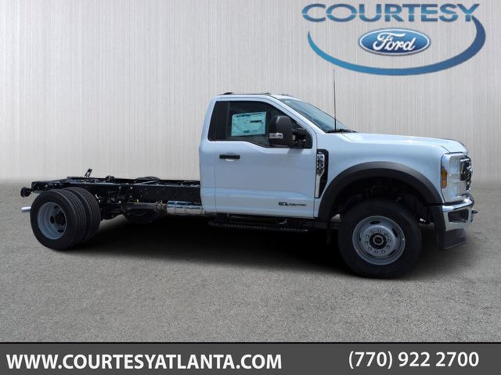 2025 Oxford White 2025 Ford F-600SD XL XL 2D Standard Cab 4WD Power Stroke 6.7L V8 DI 32V OHV Turbodiesel 2D Standard Cab, Power Stroke 6.7L V8 DI 32V OHV Turbodiesel, 10-Speed Automatic, 4WD, 410 Amp Dual Alternators w/99T, 5G WiFi Hotspot Telematics, 8" Color Touchscreen, ABS brakes, Bright Grille, Chrome Front Bumper, Compass, Dual 68 AH/65 AGM Battery, Dual Diesel Fuel Tanks, Electronic Stability Control, GVWR: 22,000 lbs Payload Package, Halogen Fog Lamps, Heated door mirrors, Illuminated entry, Limited Slip w/4.30 Axle Ratio, Low tire pressure warning, Order Code 680A, Preferred Equipment Package, Remote keyless entry, Remote Start, Remote Start, Skid Plate Package, SYNC 4 Communication & Entertainment System, Tow Package, Traction control, Trailer Brake Controller, Trailer Package, XL Chrome Package. GVWR: 22,000 lbs Payload Package, Order Code 680A, XL Chrome Package (Bright Grille, Chrome Front Bumper, Halogen Fog Lamps, and Remote Start), 2D Standard Cab, Power Stroke 6.7L V8 DI 32V OHV Turbodiesel, 10-Speed Automatic, 4WD, 410 Amp Dual Alternators w/99T, 5G WiFi Hotspot Telematics, 8" Color Touchscreen, ABS brakes, Compass, Dual 68 AH/65 AGM Battery, Dual Diesel Fuel Tanks, Electronic Stability Control, Heated door mirrors, Illuminated entry, Limited Slip w/4.30 Axle Ratio, Low tire pressure warning, Preferred Equipment Package, Remote keyless entry, Remote Start, Skid Plate Package, SYNC 4 Communication & Entertainment System, Tow Package, Traction control, Trailer Brake Controller, Trailer Package, 4 Speakers, 4-Wheel Disc Brakes, Air Conditioning, AM/FM radio, AM/FM Stereo w/MP3 Player, Brake assist, Delay-off headlights, Dual front impact airbags, Dual front side impact airbags, Dual rear wheels, Emergency communication system: SYNC 4 911 Assist, Front anti-roll bar, Front Center Armrest w/Storage, Front reading lights, Fully automatic headlights, Outside temperature display, Overhead airbag, Overhead console, Panic alarm, Passenger cancellable airbag, Passenger vanity mirror, Power door mirrors, Power steering, Power windows, Rear anti-roll bar, Security system, Speed control, Steering wheel mounted audio controls, Tachometer, Telescoping steering wheel, Tilt steering wheel, Trip computer, Turn signal indicator mirrors, Variably intermittent wipers, and Wheels: 19.5" x 6.75" Argent Painted Steel.