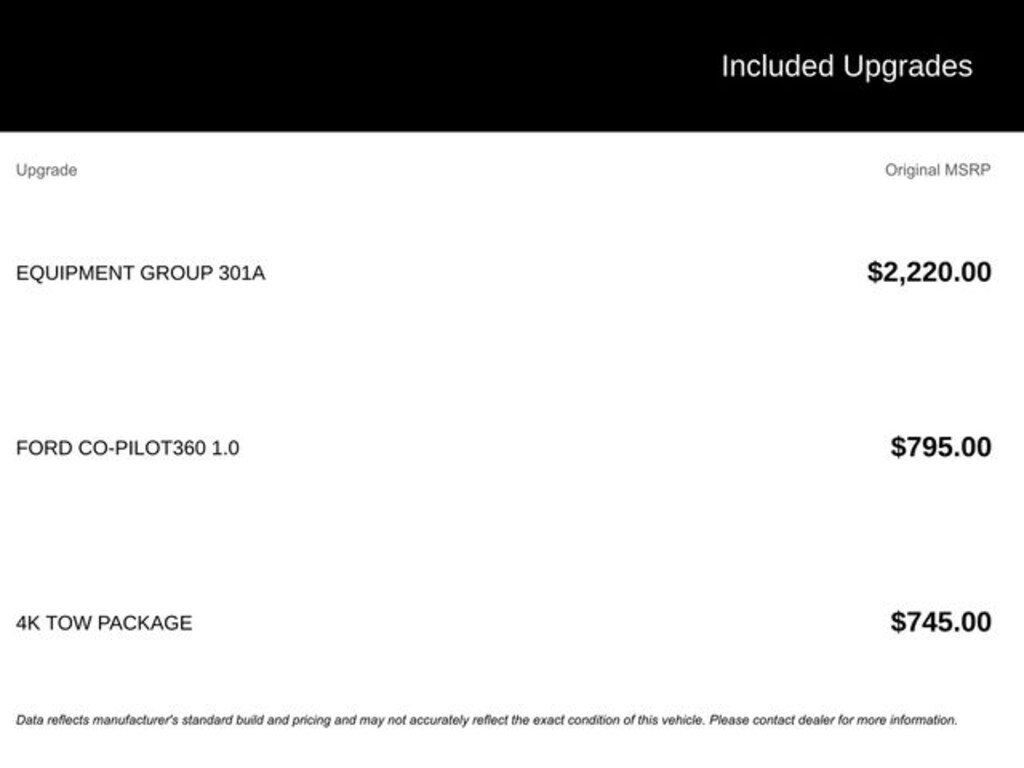2025 Oxford White 2025 Ford Maverick XLT XLT 4D Crew Cab AWD 2.5L I-4 Hybrid 2.5L I-4 Hybrid. 4K Tow Package (Trailer Brake Controller, Trailer Hitch (Class III) 2" Receiver, Transmission Oil Cooler, and Upgraded Cooling Fan), Equipment Group 301A, Ford Co-Pilot360 1.0 (Auto High Beams, BLIS w/Cross-Traffic Alert, Cross Traffic Brake Assist, Evasive Steering Assist, Intersection Assist, Lane-Keeping System, Power Glass Manual-Folding Mirrors, Pre-Collision Assist w/Automatic Emergency Braking, Rear Parking Sensors, and Rear-View Camera), 2.5L I-4 Hybrid, 2.91 Axle Ratio, 4-Wheel Disc Brakes, 6 Speakers, ABS brakes, Air Conditioning, Alloy wheels, AM/FM radio: SiriusXM with 360L, Apple CarPlay/Android Auto, Auto High-beam Headlights, Automatic temperature control, Brake assist, Bumpers: body-color, Compass, Delay-off headlights, Driver door bin, Driver vanity mirror, Dual front impact airbags, Dual front side impact airbags, Electronic Stability Control, Emergency communication system: SYNC 4 911 Assist, Exterior Parking Camera Rear, Four wheel independent suspension, Front anti-roll bar, Front Bucket Seats, Front Center Armrest, Front reading lights, Fully automatic headlights, Illuminated entry, Knee airbag, Low tire pressure warning, Occupant sensing airbag, Outside temperature display, Overhead airbag, Overhead console, Panic alarm, Passenger door bin, Passenger vanity mirror, Power door mirrors, Power steering, Power windows, Radio data system, Radio: AM/FM Stereo w/6 Speakers, Rear anti-roll bar, Rear seat center armrest, Rear step bumper, Remote keyless entry, Security system, SiriusXM w/360L, Speed control, Speed-sensing steering, Steering wheel mounted audio controls, SYNC 4 w/Enhanced Voice Recognition, Telescoping steering wheel, Tilt steering wheel, Traction control, Trip computer, Unique Cloth Front Bucket Seats, and Wheels: 17" Carbonized Gray Painted Aluminum.