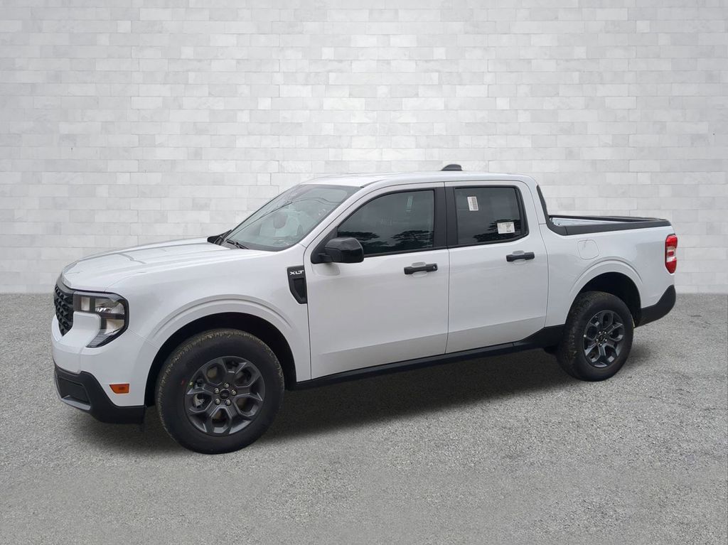 2025 Oxford White 2025 Ford Maverick XLT FWD 2.5L I-4 Hybrid 13.2" LCD Centerstack Touchscreen, 5G WiFi Hotspot Telematics, Auto Emergency Braking, Auto LED Headlights, Backup Camera, Pre Collision Assist w/ AEB, Push Button Start, Remote Start, Tow Package, Trailer Package, XLT Package, 4D Crew Cab, 2.5L I-4 Hybrid, CVT, FWD, 400W Inverter w/USB Console Rear, Auto High Beams, BLIS w/Cross-Traffic Alert, Cross Traffic Brake Assist, Equipment Group 300A, Evasive Steering Assist, Ford Co-Pilot360 1.0, Heated Mirror w/Painted Black Skull Caps, Heated Seats, Intersection Assist, Lane-Keeping System, LED Box Lighting, Power Glass Manual-Folding Mirrors, Pre-Collision Assist w/Automatic Emergency Braking, Rear Parking Sensors, Rear-View Camera, Remote Start System, Soft Vinyl Wrapped Heated Steering Wheel, XLT Luxury Package. Equipment Group 300A, Ford Co-Pilot360 1.0 (Auto High Beams, BLIS w/Cross-Traffic Alert, Cross Traffic Brake Assist, Evasive Steering Assist, Intersection Assist, Lane-Keeping System, Power Glass Manual-Folding Mirrors, Pre-Collision Assist w/Automatic Emergency Braking, Rear Parking Sensors, and Rear-View Camera), XLT Luxury Package (400W Inverter w/USB Console Rear, Heated Mirror w/Painted Black Skull Caps, Heated Seats, LED Box Lighting, Remote Start System, and Soft Vinyl Wrapped Heated Steering Wheel), 4D Crew Cab, 2.5L I-4 Hybrid, CVT, FWD, 2.91 Axle Ratio, 4-Wheel Disc Brakes, 6 Speakers, ABS brakes, Air Conditioning, Alloy wheels, AM/FM radio: SiriusXM with 360L, Apple CarPlay/Android Auto, Auto High-beam Headlights, Automatic temperature control, Brake assist, Bumpers: body-color, Compass, Delay-off headlights, Driver door bin, Driver vanity mirror, Dual front impact airbags, Dual front side impact airbags, Electronic Stability Control, Emergency communication system: SYNC 4 911 Assist, Exterior Parking Camera Rear, Front anti-roll bar, Front Bucket Seats, Front Center Armrest, Front reading lights, Front wheel independent suspension, Fully automatic headlights, Illuminated entry, Knee airbag, Low tire pressure warning, Occupant sensing airbag, Outside temperature display, Overhead airbag, Overhead console, Panic alarm, Passenger door bin, Passenger vanity mirror, Power door mirrors, Power steering, Power windows, Radio data system, Radio: AM/FM Stereo w/6 Speakers, Rear anti-roll bar, Rear seat center armrest, Rear step bumper, Remote keyless entry, Security system, SiriusXM w/360L, Speed control, Speed-sensing steering, Steering wheel mounted audio controls, SYNC 4 w/Enhanced Voice Recognition, Telescoping steering wheel, Tilt steering wheel, Traction control, Trip computer, Unique Cloth Front Bucket Seats, and Wheels: 17" Carbonized Gray Painted Aluminum Courtesy Ford and Lincoln of Rome 101 Hwy 411 E Rome, Ga 30161 ROMEFORDLINC.COM 706.235.4453.