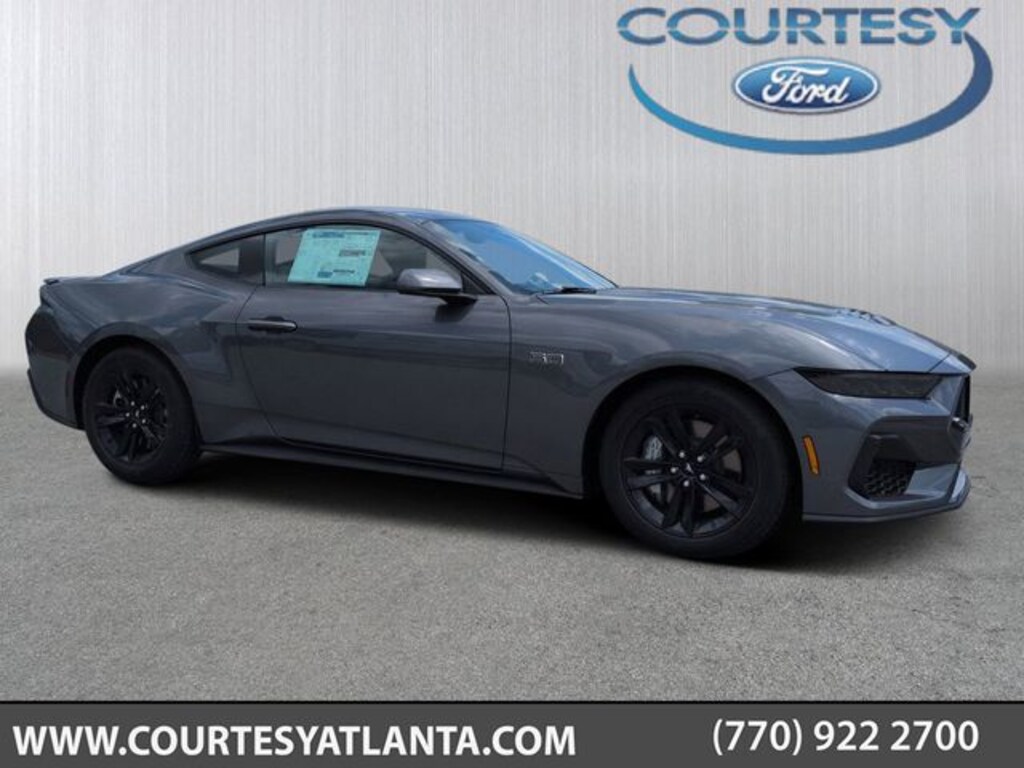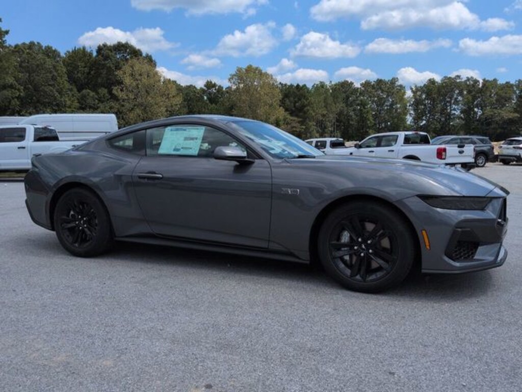 2025 Carbonized Gray Metallic 2025 Ford Mustang GT GT 2D Coupe RWD 5.0L V8 Ti-VCT 2D Coupe, 5.0L V8 Ti-VCT, 10-Speed Automatic, RWD, 12.4" LCD Digital Driver Cluster, 13.2" LCD Centerstack Touchscreen, 3.15 Limited-Slip Rear-Axle, 4G WiFi Hotspot Telematics, ABS brakes, Alloy wheels, Auto LED Headlights, Backup Camera, Compass, Electronic Stability Control, Equipment Group 300A Standard Package, Front dual zone A/C, Illuminated entry, Low tire pressure warning, Parking Sensors, Power Mirror Package, Power Package, Push Button Start, Remote keyless entry, Reverse Brake Assist, Reverse Sensing, Traction control. Equipment Group 300A Standard Package, 2D Coupe, 5.0L V8 Ti-VCT, 10-Speed Automatic, RWD, 12.4" LCD Digital Driver Cluster, 13.2" LCD Centerstack Touchscreen, 3.15 Limited-Slip Rear-Axle, 4G WiFi Hotspot Telematics, ABS brakes, Alloy wheels, Auto LED Headlights, Backup Camera, Compass, Electronic Stability Control, Front dual zone A/C, Illuminated entry, Low tire pressure warning, Parking Sensors, Power Mirror Package, Power Package, Push Button Start, Remote keyless entry, Reverse Brake Assist, Reverse Sensing, Traction control, 4-Wheel Disc Brakes, 6 Speakers, Air Conditioning, AM/FM radio, AM/FM Stereo, Auto High-beam Headlights, Automatic temperature control, Brake assist, Bumpers: body-color, Cloth Bucket Seats, Delay-off headlights, Driver door bin, Driver vanity mirror, Dual front impact airbags, Dual front side impact airbags, Emergency communication system: 911 Assist, Exterior Parking Camera Rear, Four wheel independent suspension, Front anti-roll bar, Front Bucket Seats, Front Center Armrest, Front reading lights, Fully automatic headlights, Knee airbag, Leather Shift Knob, Leather steering wheel, Occupant sensing airbag, Outside temperature display, Overhead airbag, Overhead console, Panic alarm, Passenger door bin, Passenger vanity mirror, Power door mirrors, Power steering, Power windows, Radio data system, Rain sensing wipers, Rear anti-roll bar, Rear Parking Sensors, Rear window defroster, Speed control, Speed-sensing steering, Speed-Sensitive Wipers, Split folding rear seat, Spoiler, Sport steering wheel, Steering wheel mounted audio controls, SYNC 4, Tachometer, Telescoping steering wheel, Tilt steering wheel, Trip computer, Voltmeter, and Wheels: 18" x 8.5" Ebony Black Painted Aluminum.