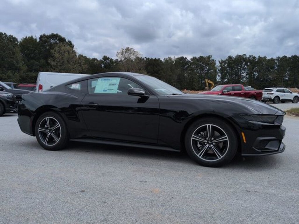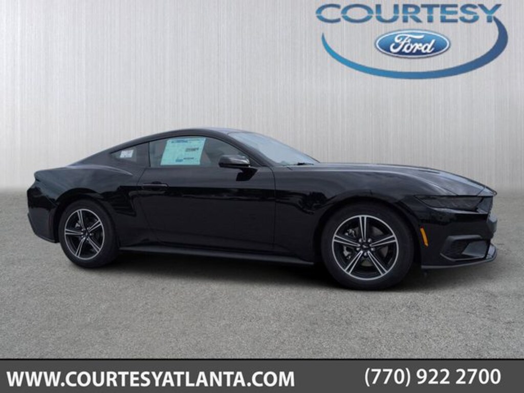 2025 Shadow Black 2025 Ford Mustang EcoBoost DP EcoBoost 2D Coupe RWD EcoBoost 2.3L I4 GTDi DOHC Turbocharged VCT 2D Coupe, EcoBoost 2.3L I4 GTDi DOHC Turbocharged VCT, 10-Speed Automatic, RWD, 12.4" LCD Digital Driver Cluster, 13.2" LCD Centerstack Touchscreen, 4G WiFi Hotspot Telematics, ABS brakes, Alloy wheels, Auto LED Headlights, Backup Camera, Compass, Electronic Stability Control, Equipment Group 100A Standard Package, Front dual zone A/C, Illuminated entry, Low tire pressure warning, Parking Sensors, Push Button Start, Remote keyless entry, Reverse Brake Assist, Reverse Sensing, Traction control. Equipment Group 100A Standard Package, 2D Coupe, EcoBoost 2.3L I4 GTDi DOHC Turbocharged VCT, 10-Speed Automatic, RWD, 12.4" LCD Digital Driver Cluster, 13.2" LCD Centerstack Touchscreen, 4G WiFi Hotspot Telematics, ABS brakes, Alloy wheels, Auto LED Headlights, Backup Camera, Compass, Electronic Stability Control, Front dual zone A/C, Illuminated entry, Low tire pressure warning, Parking Sensors, Push Button Start, Remote keyless entry, Reverse Brake Assist, Reverse Sensing, Traction control, 4-Wheel Disc Brakes, 6 Speakers, Air Conditioning, AM/FM radio, AM/FM Stereo, Auto High-beam Headlights, Automatic temperature control, Brake assist, Bumpers: body-color, Cloth Bucket Seats, Delay-off headlights, Driver door bin, Driver vanity mirror, Dual front impact airbags, Dual front side impact airbags, Emergency communication system: 911 Assist, Exterior Parking Camera Rear, Four wheel independent suspension, Front anti-roll bar, Front Bucket Seats, Front Center Armrest, Front reading lights, Fully automatic headlights, Knee airbag, Leather Shift Knob, Occupant sensing airbag, Outside temperature display, Overhead airbag, Overhead console, Panic alarm, Passenger door bin, Passenger vanity mirror, Power door mirrors, Power steering, Power windows, Radio data system, Rain sensing wipers, Rear anti-roll bar, Rear Parking Sensors, Rear window defroster, Speed control, Speed-sensing steering, Speed-Sensitive Wipers, Split folding rear seat, Sport steering wheel, Steering wheel mounted audio controls, SYNC 4, Tachometer, Telescoping steering wheel, Tilt steering wheel, Trip computer, Voltmeter, and Wheels: 18" x 8" Machined-Face Aluminum.