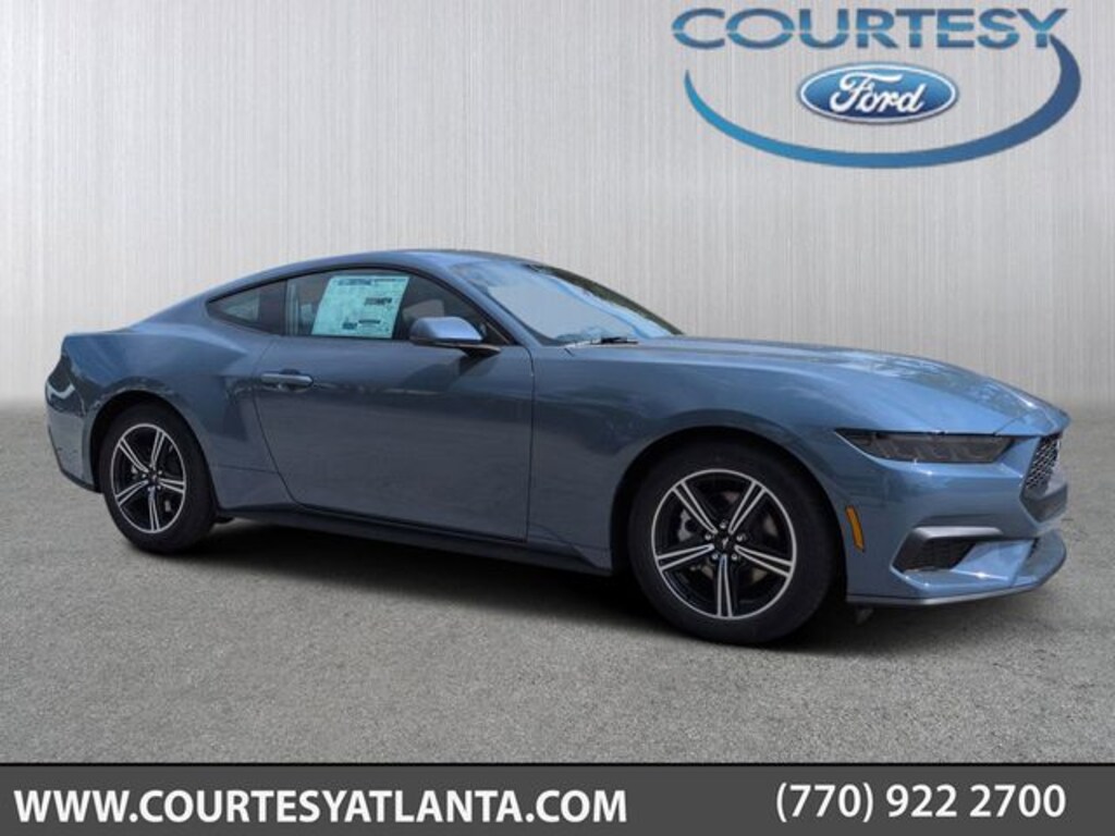 2025 Vapor Blue Metallic 2025 Ford Mustang EcoBoost EcoBoost 2D Coupe RWD EcoBoost 2.3L I4 GTDi DOHC Turbocharged VCT 2D Coupe, EcoBoost 2.3L I4 GTDi DOHC Turbocharged VCT, 10-Speed Automatic, RWD, 12.4" LCD Digital Driver Cluster, 13.2" LCD Centerstack Touchscreen, 4G WiFi Hotspot Telematics, 9-Speaker Stereo System, ABS brakes, Alloy wheels, Auto LED Headlights, Backup Camera, Cloth/Vinyl Heated Bucket Seats, Compass, Electronic Stability Control, Equipment Group 101A High Package, Front dual zone A/C, Illuminated entry, Low tire pressure warning, Power Mirror Package, Power Package, Push Button Start, Remote keyless entry, SiriusXM w/360L & HD Radio, Traction control. Equipment Group 101A High Package (9-Speaker Stereo System, Cloth/Vinyl Heated Bucket Seats, and SiriusXM w/360L & HD Radio), 2D Coupe, EcoBoost 2.3L I4 GTDi DOHC Turbocharged VCT, 10-Speed Automatic, RWD, 12.4" LCD Digital Driver Cluster, 13.2" LCD Centerstack Touchscreen, 4G WiFi Hotspot Telematics, ABS brakes, Alloy wheels, Auto LED Headlights, Backup Camera, Compass, Electronic Stability Control, Front dual zone A/C, Illuminated entry, Low tire pressure warning, Power Mirror Package, Power Package, Push Button Start, Remote keyless entry, Traction control, 4-Wheel Disc Brakes, 6 Speakers, Air Conditioning, AM/FM radio, AM/FM Stereo, Auto High-beam Headlights, Automatic temperature control, Brake assist, Bumpers: body-color, Cloth Bucket Seats, Delay-off headlights, Driver door bin, Driver vanity mirror, Dual front impact airbags, Dual front side impact airbags, Emergency communication system: 911 Assist, Exterior Parking Camera Rear, Four wheel independent suspension, Front anti-roll bar, Front Bucket Seats, Front Center Armrest, Front reading lights, Fully automatic headlights, Knee airbag, Leather Shift Knob, Occupant sensing airbag, Outside temperature display, Overhead airbag, Overhead console, Panic alarm, Passenger door bin, Passenger vanity mirror, Power door mirrors, Power steering, Power windows, Radio data system, Rain sensing wipers, Rear anti-roll bar, Rear Parking Sensors, Rear window defroster, Speed control, Speed-sensing steering, Speed-Sensitive Wipers, Split folding rear seat, Sport steering wheel, Steering wheel mounted audio controls, SYNC 4, Tachometer, Telescoping steering wheel, Tilt steering wheel, Trip computer, Voltmeter, and Wheels: 18" x 8" Machined-Face Aluminum.