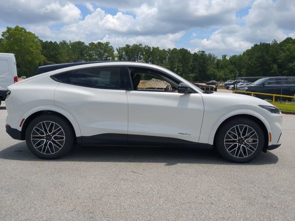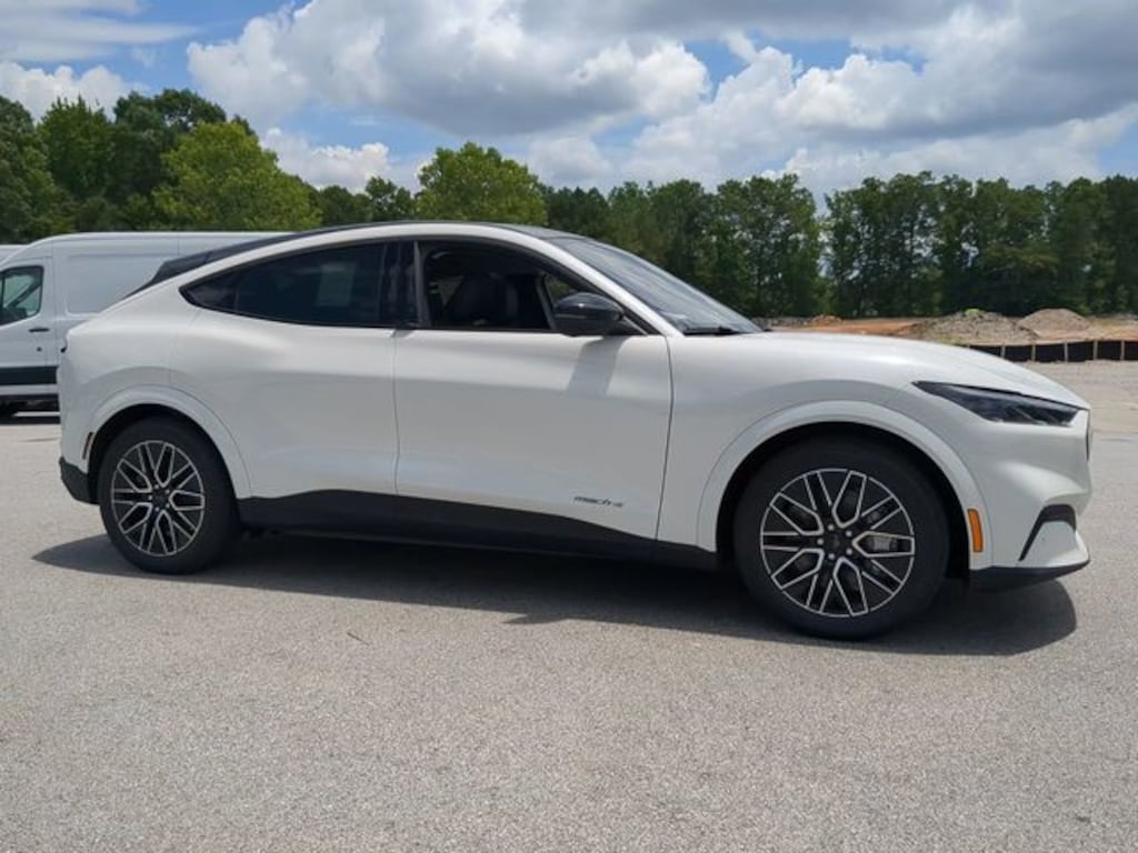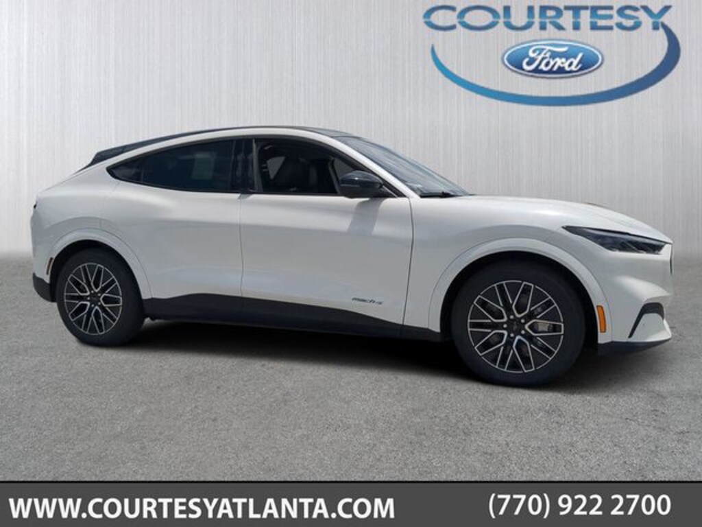 2025 Star White Metallic Tri-Coat 2025 Ford Mustang Mach-E Premium Premium 4D Sport Utility RWD Electric Motor 10.2" Digital Driver Cluster, 15.5" Color Touchscreen, 360-Degree Camera, Auto LED Headlights, Backup Camera, BlueCruise, Memory Package, Panoramic Sunroof/Moonroof, Power Mirror Package, Power Package, Premium Sound Package, Wireless Charging Pad, 4D Sport Utility, Electric Motor, Single-Speed Automatic, RWD, Equipment Group 300A Standard Package, Navigation system: Connected Navigation, Panoramic Fixed-Glass Roof. Equipment Group 300A Standard Package, 4D Sport Utility, Electric Motor, Single-Speed Automatic, RWD, Navigation system: Connected Navigation, Panoramic Fixed-Glass Roof, 10 Speakers, 4-Wheel Disc Brakes, ABS brakes, Air Conditioning, Alloy wheels, AM/FM radio: SiriusXM with 360L, Apple CarPlay/Android Auto, Auto High-beam Headlights, Auto-dimming Rear-View mirror, Automatic temperature control, Brake assist, Bumpers: body-color, Compass, Delay-off headlights, Driver door bin, Driver vanity mirror, Dual front impact airbags, Dual front side impact airbags, Electronic Stability Control, Emergency communication system: 911 Assist, Exterior Parking Camera Rear, Four wheel independent suspension, Front anti-roll bar, Front Bucket Seats, Front Center Armrest, Front dual zone A/C, Front reading lights, Fully automatic headlights, Garage door transmitter, Heated door mirrors, Heated front seats, Heated steering wheel, Heated/Ventilated Perforated ActiveX Bucket Seats, Illuminated entry, Knee airbag, Low tire pressure warning, Memory seat, Mobile Power Cord (120V/240V), Occupant sensing airbag, Outside temperature display, Overhead airbag, Overhead console, Panic alarm, Passenger door bin, Passenger vanity mirror, Power door mirrors, Power driver seat, Power Liftgate, Power passenger seat, Power steering, Power windows, Radio data system, Radio: B&O Sound System by Bang & Olufsen, Rain sensing wipers, Rear anti-roll bar, Rear seat center armrest, Rear side impact airbag, Rear window defroster, Rear window wiper, Remote keyless entry, Security system, SiriusXM w/360L, Speed control, Speed-sensing steering, Speed-Sensitive Wipers, Split folding rear seat, Spoiler, Steering wheel mounted audio controls, SYNC 4A w/Enhanced Voice Recognition, Telescoping steering wheel, Tilt steering wheel, Traction control, Trip computer, Turn signal indicator mirrors, Variably intermittent wipers, Ventilated front seats, and Wheels: 19" Bright Machined-Face Aluminum.