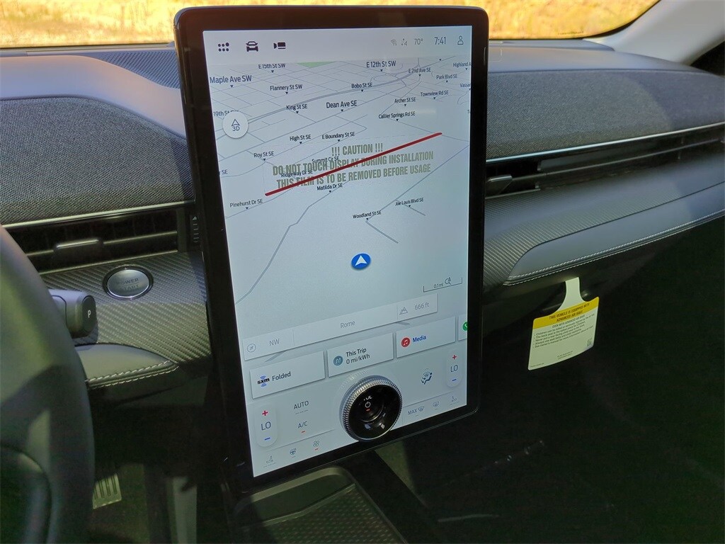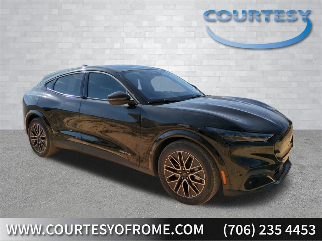 2025 Shadow Black 2025 Ford Mustang Mach-E Premium AWD Electric Motor 10.2" Digital Driver Cluster, 15.5" Color Touchscreen, 360-Degree Camera, Auto LED Headlights, Backup Camera, LED Projector Headlights, Panoramic Sunroof/Moonroof, Wireless Charging Pad, 4D Sport Utility, Electric Motor, Single-Speed Automatic, AWD, Equipment Group 300A Standard Package, Mobile Power Cord (120V/240V), NACS Fast Charging Adapter, Navigation system: Connected Navigation. Equipment Group 300A Standard Package, 4D Sport Utility, Electric Motor, Single-Speed Automatic, AWD, Mobile Power Cord (120V/240V), NACS Fast Charging Adapter, Navigation system: Connected Navigation, 10 Speakers, 4-Wheel Disc Brakes, ABS brakes, Air Conditioning, Alloy wheels, AM/FM radio: SiriusXM with 360L, Apple CarPlay/Android Auto, Auto High-beam Headlights, Auto-dimming Rear-View mirror, Automatic temperature control, Brake assist, Bumpers: body-color, Compass, Delay-off headlights, Driver door bin, Driver vanity mirror, Dual front impact airbags, Dual front side impact airbags, Electronic Stability Control, Emergency communication system: 911 Assist, Exterior Parking Camera Rear, Four wheel independent suspension, Front anti-roll bar, Front Bucket Seats, Front Center Armrest, Front dual zone A/C, Front reading lights, Fully automatic headlights, Garage door transmitter, Heated door mirrors, Heated front seats, Heated steering wheel, Heated/Ventilated Perforated ActiveX Bucket Seats, Illuminated entry, Knee airbag, Low tire pressure warning, Memory seat, Occupant sensing airbag, Outside temperature display, Overhead airbag, Overhead console, Panic alarm, Passenger door bin, Passenger vanity mirror, Power door mirrors, Power driver seat, Power Liftgate, Power passenger seat, Power steering, Power windows, Radio data system, Radio: B&O Sound System by Bang & Olufsen, Rain sensing wipers, Rear anti-roll bar, Rear seat center armrest, Rear side impact airbag, Rear window defroster, Rear window wiper, Remote keyless entry, Security system, SiriusXM w/360L, Speed control, Speed-sensing steering, Speed-Sensitive Wipers, Split folding rear seat, Spoiler, Steering wheel mounted audio controls, SYNC 4A w/Enhanced Voice Recognition, Telescoping steering wheel, Tilt steering wheel, Traction control, Trip computer, Turn signal indicator mirrors, Variably intermittent wipers, Ventilated front seats, and Wheels: 19" Bright Machined-Face Aluminum Courtesy Ford and Lincoln of Rome 101 Hwy 411 E Rome, Ga 30161 ROMEFORDLINC.COM 706.235.4453.