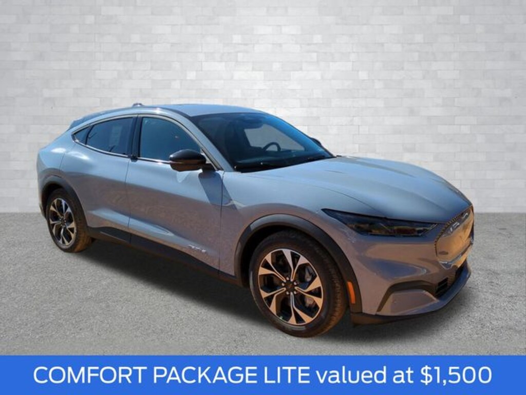 2025 Glacier Gray Metallic TriCoat 2025 Ford Mustang Mach-E Select Select 4D Sport Utility RWD Dual Electric Motor 4-Wheel Disc Brakes, 6 Speakers, ABS brakes, ActiveX Bucket Seats, Air Conditioning, Alloy wheels, AM/FM radio: SiriusXM with 360L, AM/FM Stereo, Apple CarPlay/Android Auto, Auto High-beam Headlights, Auto-dimming Rear-View mirror, Automatic temperature control, Brake assist, Bumpers: body-color, Compass, Delay-off headlights, Driver door bin, Driver vanity mirror, Dual front impact airbags, Dual front side impact airbags, Electronic Stability Control, Emergency communication system: 911 Assist, Exterior Parking Camera Rear, Four wheel independent suspension, Front anti-roll bar, Front Bucket Seats, Front Center Armrest, Front dual zone A/C, Front reading lights, Fully automatic headlights, Garage door transmitter, Heated door mirrors, Illuminated entry, Knee airbag, Low tire pressure warning, Navigation system: Connected Navigation, Occupant sensing airbag, Outside temperature display, Overhead airbag, Overhead console, Panic alarm, Passenger door bin, Passenger vanity mirror, Power door mirrors, Power driver seat, Power steering, Power windows, Radio data system, Rain sensing wipers, Rear anti-roll bar, Rear seat center armrest, Rear side impact airbag, Rear window defroster, Rear window wiper, Remote keyless entry, Security system, SiriusXM w/360L, Speed control, Speed-sensing steering, Speed-Sensitive Wipers, Split folding rear seat, Spoiler, Steering wheel mounted audio controls, SYNC 4A w/Enhanced Voice Recognition, Telescoping steering wheel, Tilt steering wheel, Traction control, Trip computer, Turn signal indicator mirrors, Variably intermittent wipers, and Wheels: 19" Machined-Face Aluminum.