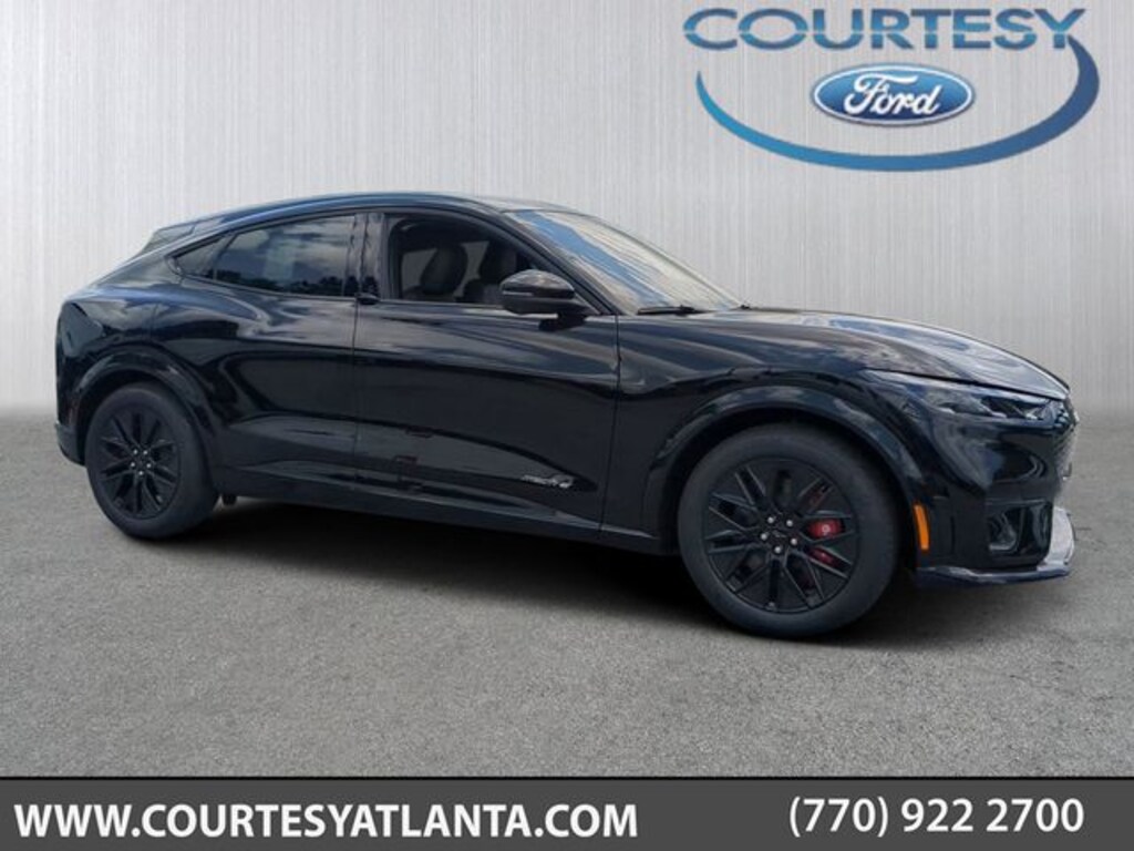 2025 Shadow Black 2025 Ford Mustang Mach-E Premium Premium 4D Sport Utility RWD Electric Motor 10.2" Digital Driver Cluster, 15.5" Color Touchscreen, 360-Degree Camera, Auto LED Headlights, Backup Camera, Panoramic Sunroof/Moonroof, Wireless Charging Pad, 4D Sport Utility, Electric Motor, Single-Speed Automatic, RWD, Brembo Branded Front Brakes, Equipment Group 300A Standard Package, Mobile Power Cord (120V/240V), Navigation system: Connected Navigation, Red Painted Front & Rear Brake Calipers, Sport Appearance Package, Sport Pedals, Unique Front Fascia, Wheels: 19" Monochromatic High Gloss Black-Painted. Equipment Group 300A Standard Package, Sport Appearance Package (Brembo Branded Front Brakes, Red Painted Front & Rear Brake Calipers, Sport Pedals, Unique Front Fascia, and Wheels: 19" Monochromatic High Gloss Black-Painted), 4D Sport Utility, Electric Motor, Single-Speed Automatic, RWD, Mobile Power Cord (120V/240V), Navigation system: Connected Navigation, 10 Speakers, 4-Wheel Disc Brakes, ABS brakes, Air Conditioning, Alloy wheels, AM/FM radio: SiriusXM with 360L, Apple CarPlay/Android Auto, Auto High-beam Headlights, Auto-dimming Rear-View mirror, Automatic temperature control, Brake assist, Bumpers: body-color, Compass, Delay-off headlights, Driver door bin, Driver vanity mirror, Dual front impact airbags, Dual front side impact airbags, Electronic Stability Control, Emergency communication system: 911 Assist, Exterior Parking Camera Rear, Four wheel independent suspension, Front anti-roll bar, Front Bucket Seats, Front Center Armrest, Front dual zone A/C, Front reading lights, Fully automatic headlights, Garage door transmitter, Heated door mirrors, Heated front seats, Heated steering wheel, Heated/Ventilated Perforated ActiveX Bucket Seats, Illuminated entry, Knee airbag, Low tire pressure warning, Memory seat, Occupant sensing airbag, Outside temperature display, Overhead airbag, Overhead console, Panic alarm, Panoramic Fixed-Glass Roof, Passenger door bin, Passenger vanity mirror, Power door mirrors, Power driver seat, Power Liftgate, Power passenger seat, Power steering, Power windows, Radio data system, Radio: B&O Sound System by Bang & Olufsen, Rain sensing wipers, Rear anti-roll bar, Rear seat center armrest, Rear side impact airbag, Rear window defroster, Rear window wiper, Remote keyless entry, Security system, SiriusXM w/360L, Speed control, Speed-sensing steering, Speed-Sensitive Wipers, Split folding rear seat, Spoiler, Steering wheel mounted audio controls, SYNC 4A w/Enhanced Voice Recognition, Telescoping steering wheel, Tilt steering wheel, Traction control, Trip computer, Turn signal indicator mirrors, Ventilated front seats, and Wheels: 19" Bright Machined-Face Aluminum.