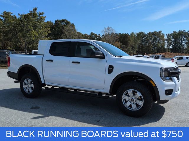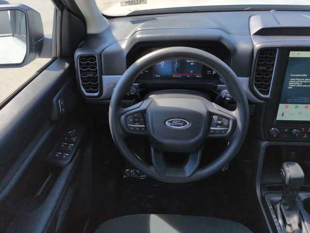 2025 Oxford White 2025 Ford Ranger XL XL 4D Crew Cab RWD EcoBoost 2.3L I4 GTDi DOHC Turbocharged VCT STX Appearance Package (Halogen Fog Lamps, LED Reflector Headlamps, and STX Fender Badge), Trailer Tow Package (Class IV Trailer Hitch Receiver), 4-Wheel Disc Brakes, 6 Speakers, ABS brakes, Air Conditioning, Alloy wheels, AM/FM radio, AM/FM Stereo, Auto High-beam Headlights, Black Running Boards, Brake assist, Bumpers: body-color, Carpet Floor Covering w/Carpet Floor Mats, Cloth Front Bucket Seats, Compass, Delay-off headlights, Driver door bin, Dual front impact airbags, Dual front side impact airbags, Electronic Stability Control, Emergency communication system: SYNC 4 911 Assist, Front anti-roll bar, Front Bucket Seats, Front Center Armrest, Front fog lights, Front License Plate Bracket, Front reading lights, Front wheel independent suspension, Fully automatic headlights, Illuminated entry, Internet access capable: FordPass Connect 4G, Low tire pressure warning, Occupant sensing airbag, Outside temperature display, Overhead airbag, Overhead console, Panic alarm, Passenger door bin, Power door mirrors, Power steering, Power windows, Rear reading lights, Rear seat center armrest, Rear step bumper, Remote keyless entry, Security system, Speed control, Speed-sensing steering, Steering wheel mounted audio controls, SYNC 4A, Telescoping steering wheel, Tilt steering wheel, Traction control, Trip computer, Variably intermittent wipers, Voltmeter, and Wheels: 17" Silver-Painted Aluminum.