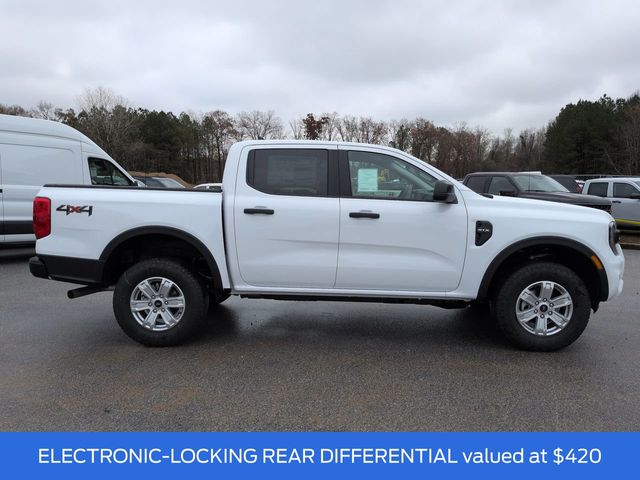 2025 Oxford White 2025 Ford Ranger XL XL 4D Crew Cab 4WD EcoBoost 2.3L I4 GTDi DOHC Turbocharged VCT 4WD, Spray-In Bedliner. Equipment Group 100A Standard, STX Appearance Package (Halogen Fog Lamps, LED Reflector Headlamps, and STX Fender Badge), Trailer Tow Package (Class IV Trailer Hitch Receiver), 4WD, Spray-In Bedliner, 4-Wheel Disc Brakes, 6 Speakers, ABS brakes, Air Conditioning, Alloy wheels, AM/FM radio, AM/FM Stereo, Auto High-beam Headlights, Brake assist, Bumpers: body-color, Carpet Floor Covering w/Carpet Floor Mats, Cloth Front Bucket Seats, Compass, Delay-off headlights, Driver door bin, Dual front impact airbags, Dual front side impact airbags, Electronic Stability Control, Emergency communication system: SYNC 4 911 Assist, Front anti-roll bar, Front Bucket Seats, Front Center Armrest, Front fog lights, Front License Plate Bracket, Front reading lights, Front wheel independent suspension, Fully automatic headlights, Illuminated entry, Low tire pressure warning, Occupant sensing airbag, Outside temperature display, Overhead airbag, Overhead console, Panic alarm, Passenger door bin, Power door mirrors, Power steering, Power windows, Rear reading lights, Rear seat center armrest, Rear step bumper, Remote keyless entry, Security system, Speed control, Speed-sensing steering, Steering wheel mounted audio controls, SYNC 4A, Telescoping steering wheel, Tilt steering wheel, Traction control, Trip computer, Variably intermittent wipers, Voltmeter, and Wheels: 17" Silver-Painted Aluminum. $1,000 - Exp. 12/31/2026 Retail Trade Assistance. Must trade in a vehicle to qualify $1,000 - Exp. 12/31/2026 Dealer Finance Assistance. Must finance through dealer lender to qualify.