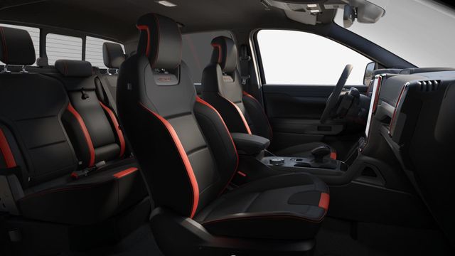 2025 Shadow Black 2025 Ford Ranger Raptor Raptor 4D Crew Cab 4WD 3.0L EcoBoost V6 4WD. 4WD, 10 Speakers, 4-Wheel Disc Brakes, 4.27 Axle Ratio, ABS brakes, Air Conditioning, Alloy wheels, AM/FM radio: SiriusXM, Auto High-beam Headlights, Auto-dimming Rear-View mirror, Automatic temperature control, Brake assist, Compass, Delay-off headlights, Driver door bin, Driver vanity mirror, Dual front impact airbags, Dual front side impact airbags, Electronic Stability Control, Emergency communication system: SYNC 4 911 Assist, Front anti-roll bar, Front Bucket Seats, Front Center Armrest, Front dual zone A/C, Front fog lights, Front reading lights, Front wheel independent suspension, Fully automatic headlights, Garage door transmitter, Heated door mirrors, Heated front seats, Heated steering wheel, Illuminated entry, Internet access capable: FordPass Connect 4G, Leather Shift Knob, Leather steering wheel, Leather-Trimmed Front Heated Bucket Seats, Low tire pressure warning, Memory seat, Navigation system: Connected Navigation, Occupant sensing airbag, Outside temperature display, Overhead airbag, Overhead console, Panic alarm, Passenger door bin, Passenger vanity mirror, Power door mirrors, Power driver seat, Power passenger seat, Power steering, Power windows, Radio: B&O Sound System by Bang & Olufsen, Rain sensing wipers, Rear reading lights, Rear seat center armrest, Rear step bumper, Rear window defroster, Remote keyless entry, Security system, SiriusXM Satellite Radio, Speed control, Speed-sensing steering, Steering wheel mounted audio controls, SYNC 4A, Telescoping steering wheel, Tilt steering wheel, Traction control, Trip computer, Turn signal indicator mirrors, Variably intermittent wipers, Voltmeter, and Wheels: 17" Gray-Painted Aluminum.