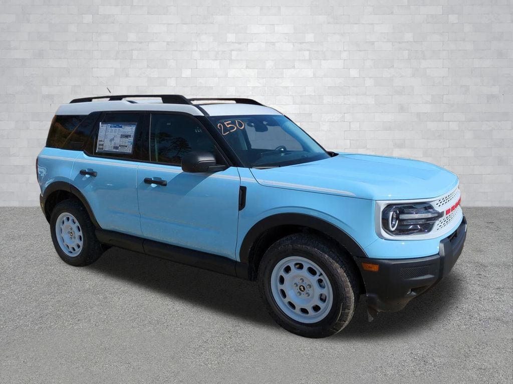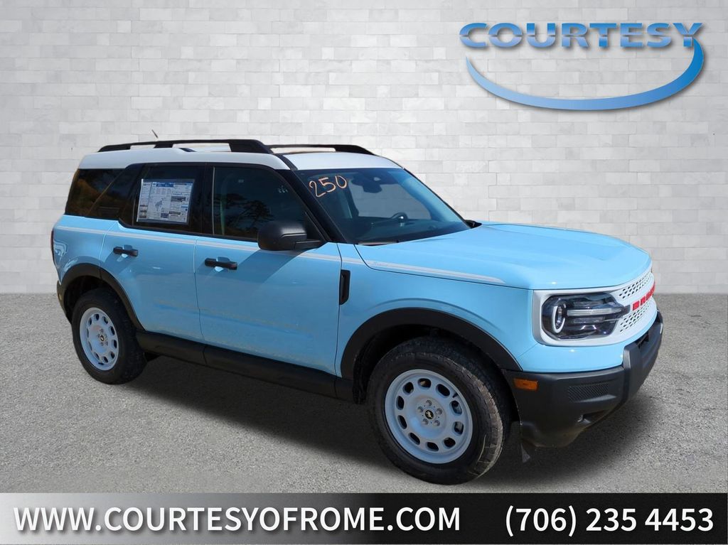 2026 Blue 2026 Ford Bronco Sport Heritage 4WD 1.5L EcoBoost Ford Connectivity Package (1-Year Included), Internet access capable: 5G Modem - Ford Connectivity Package, 4-Wheel Disc Brakes, 6 Speakers, ABS brakes, Air Conditioning, Alloy wheels, AM/FM radio: SiriusXM with 360L, AM/FM Stereo, Apple CarPlay/Android Auto, Auto High-beam Headlights, Automatic temperature control, Brake assist, Compass, Delay-off headlights, Driver door bin, Driver vanity mirror, Dual front impact airbags, Dual front side impact airbags, Electronic Stability Control, Emergency communication system: SYNC 4 911 Assist, Exterior Parking Camera Rear, Four wheel independent suspension, Front anti-roll bar, Front Bucket Seats, Front Center Armrest, Front Driver/Passenger Seat Back Map Pockets, Front reading lights, Fully automatic headlights, Heated door mirrors, Illuminated entry, Knee airbag, Low tire pressure warning, Occupant sensing airbag, Outside temperature display, Overhead airbag, Overhead console, Panic alarm, Passenger door bin, Passenger vanity mirror, Plaid Cloth Front Bucket Seats, Power door mirrors, Power steering, Power windows, Radio data system, Rear anti-roll bar, Rear Parking Sensors, Rear reading lights, Rear seat center armrest, Rear window defroster, Rear window wiper, Remote keyless entry, Security system, SiriusXM with 360L, Speed control, Speed-sensing steering, Speed-Sensitive Wipers, Split folding rear seat, Steering wheel mounted audio controls, SYNC 4 with Enhanced Voice Recognition, Tachometer, Telescoping steering wheel, Tilt steering wheel, Traction control, Trip computer, Variably intermittent wipers, and Wheels: 17" Oxford White-Painted Aluminum Courtesy Ford and Lincoln of Rome 101 Hwy 411 E Rome, Ga 30161 ROMEFORDLINC.COM 706.235.4453.