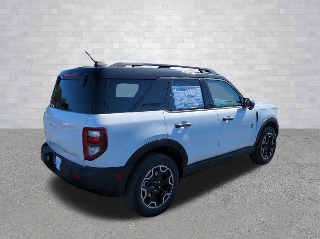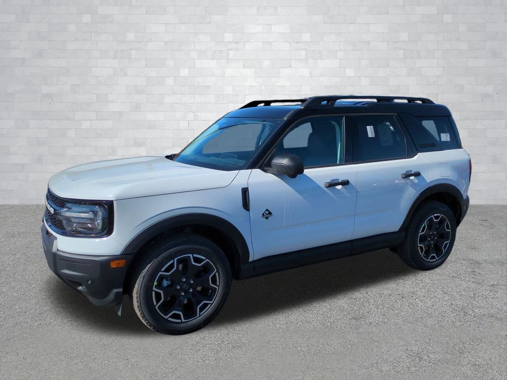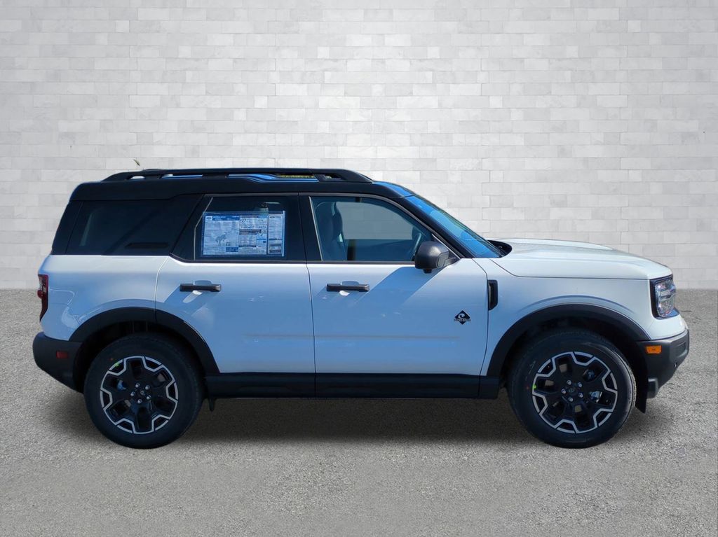 2026 Oxford White 2026 Ford Bronco Sport Outer Banks 4WD 1.5L EcoBoost Ford Connectivity Package (1-Year Included), Internet access capable: 5G Modem - Ford Connectivity Package, 4-Wheel Disc Brakes, 6 Speakers, ABS brakes, Air Conditioning, Alloy wheels, AM/FM radio: SiriusXM with 360L, AM/FM Stereo, Apple CarPlay/Android Auto, Auto High-beam Headlights, Auto-dimming Rear-View mirror, Automatic temperature control, Brake assist, Compass, Delay-off headlights, Driver door bin, Driver vanity mirror, Dual front impact airbags, Dual front side impact airbags, Electronic Stability Control, Emergency communication system: SYNC 4 911 Assist, Exterior Parking Camera Rear, Four wheel independent suspension, Front anti-roll bar, Front Bucket Seats, Front Center Armrest, Front Driver/Passenger Seat Back Map Pockets, Front dual zone A/C, Front fog lights, Front reading lights, Fully automatic headlights, Heated door mirrors, Heated front seats, Heated steering wheel, Illuminated entry, Knee airbag, Low tire pressure warning, Memory seat, Occupant sensing airbag, Outside temperature display, Overhead airbag, Overhead console, Panic alarm, Passenger door bin, Passenger vanity mirror, Power door mirrors, Power driver seat, Power passenger seat, Power steering, Power windows, Radio data system, Rear anti-roll bar, Rear Parking Sensors, Rear reading lights, Rear seat center armrest, Rear window defroster, Rear window wiper, Remote keyless entry, Security system, SiriusXM with 360L, Speed control, Speed-sensing steering, Speed-Sensitive Wipers, Split folding rear seat, Steering wheel mounted audio controls, SYNC 4 with Enhanced Voice Recognition, Tachometer, Telescoping steering wheel, Tilt steering wheel, Traction control, Trip computer, Variably intermittent wipers, and Wheels: 18" Ebony Black Courtesy Ford and Lincoln of Rome 101 Hwy 411 E Rome, Ga 30161 ROMEFORDLINC.COM 706.235.4453.