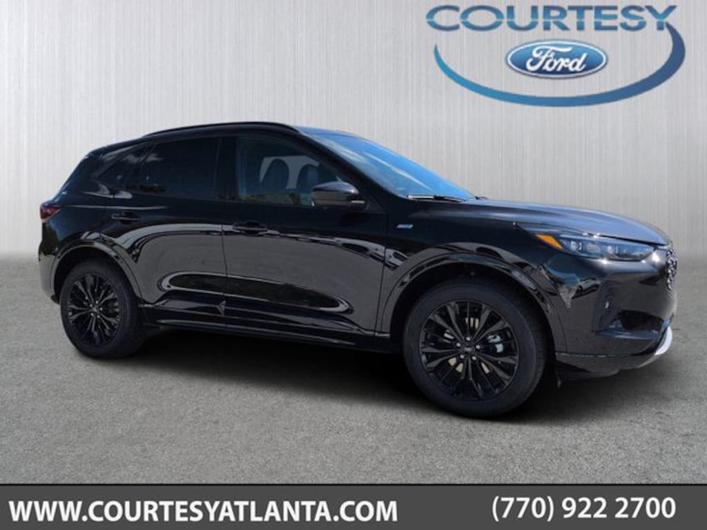 2026 Agate Black 2026 Ford Escape Hybrid ST-Line Elite ST-Line Elite 4D Sport Utility AWD 2.5L iVCT 4D Sport Utility, 2.5L iVCT, ABS brakes, Active Cruise Control, Alloy wheels, Compass, Electronic Stability Control, Front dual zone A/C, Heated door mirrors, Heated front seats, Illuminated entry, Low tire pressure warning, Navigation System, Power Liftgate, Remote keyless entry, Traction control. 4D Sport Utility, 2.5L iVCT, ABS brakes, Active Cruise Control, Alloy wheels, Compass, Electronic Stability Control, Front dual zone A/C, Heated door mirrors, Heated front seats, Illuminated entry, Low tire pressure warning, Navigation System, Power Liftgate, Remote keyless entry, Traction control, 2.91 Axle Ratio, 4-Wheel Disc Brakes, 6 Speakers, Air Conditioning, AM/FM radio: SiriusXM, AM/FM Stereo, Auto High-beam Headlights, Auto-dimming Rear-View mirror, Automatic temperature control, Brake assist, Bumpers: body-color, Delay-off headlights, Driver door bin, Driver vanity mirror, Dual front impact airbags, Dual front side impact airbags, Electronic Fuel Door Release, Emergency communication system: SYNC 4 911 Assist, Ford App, Four wheel independent suspension, Front anti-roll bar, Front Bucket Seats, Front Center Armrest, Front fog lights, Front reading lights, Fully automatic headlights, Heated steering wheel, Heated Vinyl/Cloth Front Sport Contour Bucket Seats, Knee airbag, Memory seat, Navigation system: Connected Navigation, Neutral Towing Capability, Occupant sensing airbag, Outside temperature display, Overhead airbag, Overhead console, Panic alarm, Passenger door bin, Passenger vanity mirror, Pedestrian Alert Sounder, Power door mirrors, Power driver seat, Power passenger seat, Power steering, Power windows, Radio data system, Rear anti-roll bar, Rear reading lights, Rear seat center armrest, Rear window defroster, Rear window wiper, Security system, Speed control, Speed-sensing steering, Speed-Sensitive Wipers, Split folding rear seat, Spoiler, Sport steering wheel, Steering wheel mounted audio controls, SYNC 4 w/Enhanced Voice Recognition, Tachometer, Telescoping steering wheel, Tilt steering wheel, Trip computer, Variably intermittent wipers, and Wheels: 19" Machined-Face Ebony-Painted Aluminum.