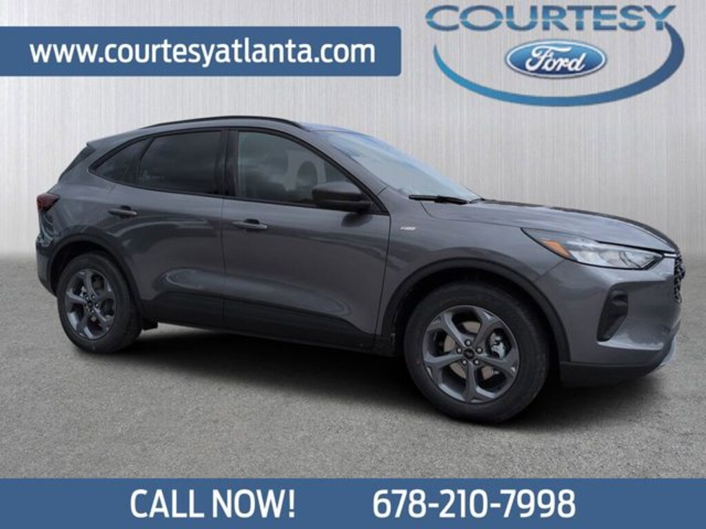 2026 Carbonized Gray Metallic 2026 Ford Escape ST-Line ST-Line 4D Sport Utility FWD 1.5L EcoBoost 4D Sport Utility, 1.5L EcoBoost, 8-Speed Automatic, FWD, Auto LED Headlights, Backup Camera, Blind Spot Monitoring, BLIS w/ Cross Traffic Alert, Bluetooth w/ Audio Streaming, Equipment Group 300A, Power Mirror Package, Power Package, Push Button Start. Equipment Group 300A, 4D Sport Utility, 1.5L EcoBoost, 8-Speed Automatic, FWD, Auto LED Headlights, Backup Camera, Blind Spot Monitoring, BLIS w/ Cross Traffic Alert, Bluetooth w/ Audio Streaming, Power Mirror Package, Power Package, Push Button Start, 3.81 Axle Ratio, 4-Wheel Disc Brakes, 6 Speakers, ABS brakes, Air Conditioning, Alloy wheels, AM/FM radio: SiriusXM, AM/FM Stereo, Auto High-beam Headlights, Automatic temperature control, Brake assist, Bumpers: body-color, Compass, Delay-off headlights, Driver door bin, Driver vanity mirror, Dual front impact airbags, Dual front side impact airbags, Electronic Stability Control, Emergency communication system: SYNC 4 911 Assist, Ford App, Four wheel independent suspension, Front anti-roll bar, Front Bucket Seats, Front Center Armrest, Front dual zone A/C, Front License Plate Bracket, Front reading lights, Fully automatic headlights, Illuminated entry, Knee airbag, Low tire pressure warning, Occupant sensing airbag, Outside temperature display, Overhead airbag, Overhead console, Panic alarm, Passenger door bin, Passenger vanity mirror, Power door mirrors, Power driver seat, Power steering, Power windows, Radio data system, Rear anti-roll bar, Rear reading lights, Rear seat center armrest, Rear window defroster, Rear window wiper, Remote keyless entry, Speed control, Speed-sensing steering, Speed-Sensitive Wipers, Split folding rear seat, Spoiler, Sport steering wheel, Steering wheel mounted audio controls, SYNC 4, Tachometer, Telescoping steering wheel, Tilt steering wheel, Traction control, Trip computer, Variably intermittent wipers, Vinyl/Cloth Front Sport Contour Bucket Seats, and Wheels: 18" Rock Metallic Painted Aluminum.