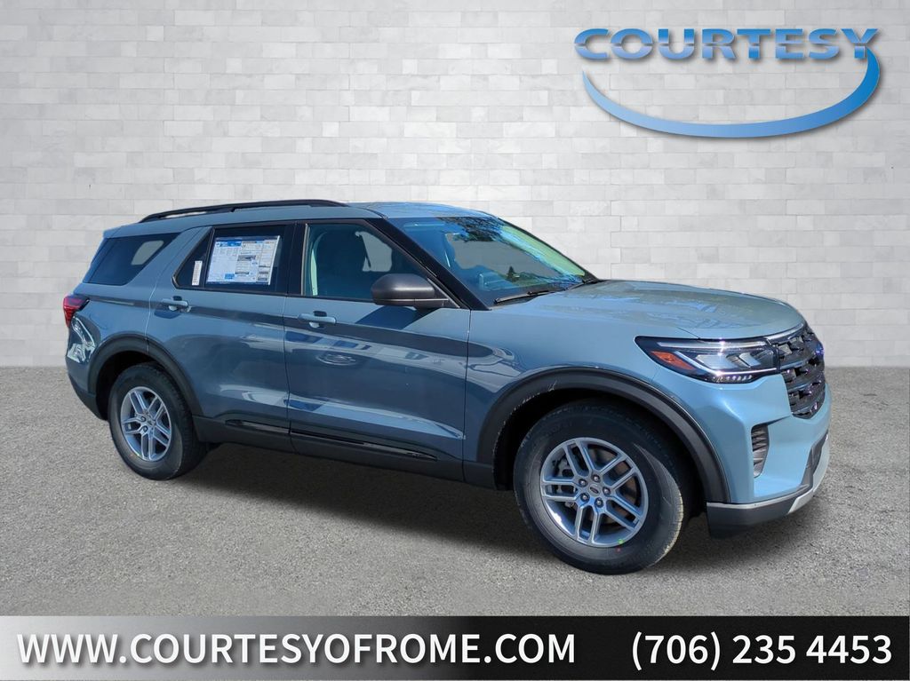 2026 Vapor Blue 2026 Ford Explorer Active RWD 2.3L EcoBoost I-4 12.3" HD Color Driver Cluster, 13.2" LCD Centerstack Touchscreen, 3rd Row Seating, Android Auto, Apple Carplay, Auto LED Headlights, Backup Camera, Bluetooth w/ Audio Streaming, 4D Sport Utility, 2.3L EcoBoost I-4, 10-Speed Automatic, RWD, AM/FM Stereo, Equipment Group 200A Standard Package, Navigation System, Unique Cloth Heated Captain's Chairs, Wheels: 18" Sparkle Silver-Painted Aluminum. Equipment Group 200A Standard Package (AM/FM Stereo, Unique Cloth Heated Captain's Chairs, and Wheels: 18" Sparkle Silver-Painted Aluminum), 4D Sport Utility, 2.3L EcoBoost I-4, 10-Speed Automatic, RWD, Navigation System, 3rd row seats: bench, 4-Wheel Disc Brakes, 6 Speakers, ABS brakes, Air Conditioning, Alloy wheels, AM/FM radio: SiriusXM with 360L, Apple CarPlay/Android Auto, Auto High-beam Headlights, Automatic temperature control, Brake assist, Bumpers: body-color, Compass, Delay-off headlights, Driver door bin, Driver vanity mirror, Dual front impact airbags, Dual front side impact airbags, Electronic Stability Control, Emergency communication system: 911 Assist, Exterior Parking Camera Rear, Four wheel independent suspension, Front anti-roll bar, Front Bucket Seats, Front Center Armrest, Front dual zone A/C, Front reading lights, Fully automatic headlights, Heated door mirrors, Illuminated entry, Knee airbag, Low tire pressure warning, Occupant sensing airbag, Outside temperature display, Overhead airbag, Overhead console, Panic alarm, Passenger door bin, Passenger vanity mirror, Power door mirrors, Power driver seat, Power steering, Power windows, Rear air conditioning, Rear anti-roll bar, Rear reading lights, Rear window defroster, Rear window wiper, Remote keyless entry, Security system, Speed control, Speed-sensing steering, Speed-Sensitive Wipers, Split folding rear seat, Spoiler, Steering wheel mounted audio controls, Tachometer, Telescoping steering wheel, Tilt steering wheel, Traction control, Trip computer, and Variably intermittent wipers Courtesy Ford and Lincoln of Rome 101 Hwy 411 E Rome, Ga 30161 ROMEFORDLINC.COM 706.235.4453.