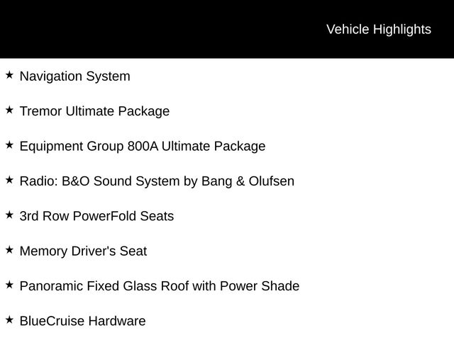 2026 Space White Metallic 2026 Ford Explorer Tremor Tremor 4D Sport Utility 4WD 3.0L EcoBoost V6 4D Sport Utility, 3.0L EcoBoost V6, 10-Speed Automatic, 4WD, 12.3" HD Color Driver Cluster, 13.2" LCD Centerstack Touchscreen, 360-Degree Camera, 3rd Row PowerFold Seats, 3rd Row Seating, 5G WiFi Hotspot Telematics, Ambient Lighting, Android Auto, Apple Carplay, Auto Emergency Braking, Auto LED Headlights, Backup Camera, BlueCruise Equipped (90-Day Trial), BlueCruise Hardware, Bluetooth w/ Audio Streaming, Electronic Sound Enhancement, Equipment Group 800A Ultimate Package, Memory Driver's Seat, Memory Package, Multi Zone Climate Control, Multicontour Seats with Front Active Motion, Navigation System, Off Road Package, Panoramic Fixed Glass Roof with Power Shade, Panoramic Sunroof/Moonroof, Power Mirror Package, Power Package, Power-Folding with Autofold Side Mirrors, Premium Sound Package, Push Button Start, Radio: B&O Sound System by Bang & Olufsen, Rain-Sensing Wipers (front Only), Rear Climate Package, Remote Start, Skid Plate Package, Tow Package, Trailer Package, Tremor Ultimate Package, Wheels: 18" High Gloss Black-Painted Aluminum. Equipment Group 800A Ultimate Package (BlueCruise Equipped (90-Day Trial), BlueCruise Hardware, Electronic Sound Enhancement, and Wheels: 18" High Gloss Black-Painted Aluminum), Tremor Ultimate Package (3rd Row PowerFold Seats, Ambient Lighting, Memory Driver's Seat, Multicontour Seats with Front Active Motion, Panoramic Fixed Glass Roof with Power Shade, Power-Folding with Autofold Side Mirrors, Radio: B&O Sound System by Bang & Olufsen, and Rain-Sensing Wipers (front Only)), 4D Sport Utility, 3.0L EcoBoost V6, 10-Speed Automatic, 4WD, 12.3" HD Color Driver Cluster, 13.2" LCD Centerstack Touchscreen, 360-Degree Camera, 3rd Row Seating, 5G WiFi Hotspot Telematics, Android Auto, Apple Carplay, Auto Emergency Braking, Auto LED Headlights, Backup Camera, Bluetooth w/ Audio Streaming, Memory Package, Multi Zone Climate Control, Navigation System, Off Road Package, Panoramic Sunroof/Moonroof, Power Mirror Package, Power Package, Premium Sound Package, Push Button Start, Rear Climate Package, Remote Start, Skid Plate Package, Tow Package, Trailer Package, 10 Speakers, 3rd row seats: bench, 4-Wheel Disc Brakes, ABS brakes, Air Conditioning, Alloy wheels, AM/FM radio: SiriusXM with 360L, Apple CarPlay/Android Auto, Auto High-beam Headlights, Automatic temperature control, BlueCruise (equipment + 1-Year + 90-Day Plan), Brake assist, Bumpers: body-color, Compass, Delay-off headlights, Driver door bin, Driver vanity mirror, Dual front impact airbags, Dual front side impact airbags, Electronic Stability Control, Emergency communication system: 911 Assist, Exterior Parking Camera Rear, Four wheel independent suspension, Front anti-roll bar, Front Bucket Seats, Front Center Armrest, Front dual zone A/C, Front fog lights, Front reading lights, Fully automatic headlights, Heated door mirrors, Heated front seats, Heated rear seats, Heated steering wheel, Illuminated entry, Knee airbag, Leather steering wheel, Low tire pressure warning, Occupant sensing airbag, Outside temperature display, Overhead airbag, Overhead console, Panic alarm, Passenger door bin, Passenger vanity mirror, Power door mirrors, Power driver seat, Power Liftgate, Power passenger seat, Power steering, Power windows, Radio: B&O Sound System by Bang and Olufsen, Rear air conditioning, Rear anti-roll bar, Rear reading lights, Rear window defroster, Rear window wiper, Remote keyless entry, Security system, Speed control, Speed-sensing steering, Speed-Sensitive Wipers, Split folding rear seat, Spoiler, Spo Price includes: $1,000 - Exp. 12/31/2026 Retail Trade Assistance. Must trade in a vehicle to qualify $1,000 - Exp. 12/31/2026 Dealer Finance Assistance. Must finance through dealer