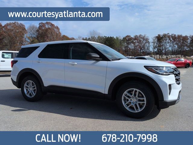 2026 Oxford White 2026 Ford Explorer Active Active 4D Sport Utility 4WD 2.3L EcoBoost I-4 4WD. Equipment Group 100A (AM/FM Stereo, Unique Cloth Captain's Chairs, and Wheels: 18" Sparkle Silver-Painted Aluminum), 4WD, 3rd row seats: bench, 4-Wheel Disc Brakes, 6 Speakers, ABS brakes, Air Conditioning, Alloy wheels, AM/FM radio: SiriusXM with 360L, Apple CarPlay/Android Auto, Auto High-beam Headlights, Automatic temperature control, Brake assist, Bumpers: body-color, Compass, Delay-off headlights, Driver door bin, Driver vanity mirror, Dual front impact airbags, Dual front side impact airbags, Electronic Stability Control, Emergency communication system: 911 Assist, Exterior Parking Camera Rear, Four wheel independent suspension, Front anti-roll bar, Front Bucket Seats, Front Center Armrest, Front dual zone A/C, Front reading lights, Fully automatic headlights, Heated ActiveX Seating Material Captain's Chairs, Heated door mirrors, Illuminated entry, Internet access capable: FordPass Connect 5G, Knee airbag, Low tire pressure warning, Navigation System, Occupant sensing airbag, Outside temperature display, Overhead airbag, Overhead console, Panic alarm, Passenger door bin, Passenger vanity mirror, Power driver seat, Power steering, Power windows, Rear air conditioning, Rear anti-roll bar, Rear reading lights, Rear window defroster, Rear window wiper, Remote keyless entry, Security system, Speed control, Speed-sensing steering, Speed-Sensitive Wipers, Split folding rear seat, Spoiler, Steering wheel mounted audio controls, Tachometer, Telescoping steering wheel, Tilt steering wheel, Traction control, Trip computer, and Variably intermittent wipers. $1,000 - Exp. 12/31/2026 Retail Trade Assistance. Must trade in a vehicle to qualify $1,000 - Exp. 12/31/2026 Dealer Finance Assistance. Must finance through dealer lender to qualify.