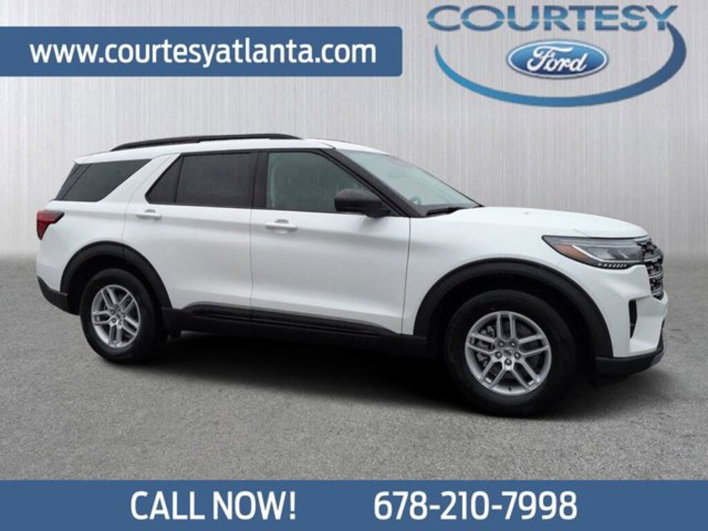 2026 Star White Metallic Tri-Coat 2026 Ford Explorer Active Active 4D Sport Utility RWD 2.3L EcoBoost I-4 4D Sport Utility, 2.3L EcoBoost I-4, 10-Speed Automatic, RWD, 12.3" HD Color Driver Cluster, 13.2" LCD Centerstack Touchscreen, 5G WiFi Hotspot Telematics, 8 USB Ports, Active Badging, Active Comfort Package, Active Noise Cancellation, Android Auto, Apple Carplay, Auto LED Headlights, Backup Camera, Black Lower Bodyside Cladding w/Chrome Accent, Black Roof-Rack Side Rails, Bluetooth w/ Audio Streaming, Cold Weather Package, Equipment Group 200A Standard Package, Front Fascia, Heated ActiveX Seating Material Captain's Chairs, Heated Steering Wheel, LED Foglights, Manual-Folding Sideview Mirrors, Navigation System, Power Liftgate, Power Mirror Package, Power Package, Push Button Start, Remote Start, Remote Start System, Second Row HVAC Controls, Tow Package, Trailer Package, Unique Cloth Heated Captain's Chairs, Vinyl-Wrapped Steering Wheel. Active Comfort Package (Front Fascia, Heated ActiveX Seating Material Captain's Chairs, Heated Steering Wheel, Remote Start System, and Second Row HVAC Controls), Equipment Group 200A Standard Package (8 USB Ports, Active Badging, Active Noise Cancellation, Black Lower Bodyside Cladding w/Chrome Accent, Black Roof-Rack Side Rails, Manual-Folding Sideview Mirrors, Power Liftgate, Unique Cloth Heated Captain's Chairs, and Vinyl-Wrapped Steering Wheel), 4D Sport Utility, 2.3L EcoBoost I-4, 10-Speed Automatic, RWD, 12.3" HD Color Driver Cluster, 13.2" LCD Centerstack Touchscreen, 5G WiFi Hotspot Telematics, Android Auto, Apple Carplay, Auto LED Headlights, Backup Camera, Bluetooth w/ Audio Streaming, Cold Weather Package, LED Foglights, Navigation System, Power Mirror Package, Power Package, Push Button Start, Remote Start, Tow Package, Trailer Package, 3rd row seats: bench, 4-Wheel Disc Brakes, 6 Speakers, ABS brakes, Air Conditioning, Alloy wheels, AM/FM radio: SiriusXM with 360L, AM/FM Stereo, Apple CarPlay/Android Auto, Auto High-beam Headlights, Automatic temperature control, Brake assist, Bumpers: body-color, Compass, Delay-off headlights, Driver door bin, Driver vanity mirror, Dual front impact airbags, Dual front side impact airbags, Electronic Stability Control, Emergency communication system: 911 Assist, Exterior Parking Camera Rear, Four wheel independent suspension, Front anti-roll bar, Front Bucket Seats, Front Center Armrest, Front dual zone A/C, Front License Plate Bracket, Front reading lights, Fully automatic headlights, Heated door mirrors, Illuminated entry, Knee airbag, Low tire pressure warning, Occupant sensing airbag, Outside temperature display, Overhead airbag, Overhead console, Panic alarm, Passenger door bin, Passenger vanity mirror, Power driver seat, Power steering, Power windows, Rear air conditioning, Rear anti-roll bar, Rear reading lights, Rear window defroster, Rear window wiper, Remote keyless entry, Security system, Speed control, Speed-sensing steering, Speed-Sensitive Wipers, Split folding rear seat, Spoiler, Steering wheel mounted audio controls, Tachometer, Telescoping steering wheel, Tilt steering wheel, Traction control, Trip computer, Unique Cloth Captain's Chairs, and Wheels: 18" Sparkle Silver-Painted Aluminum.