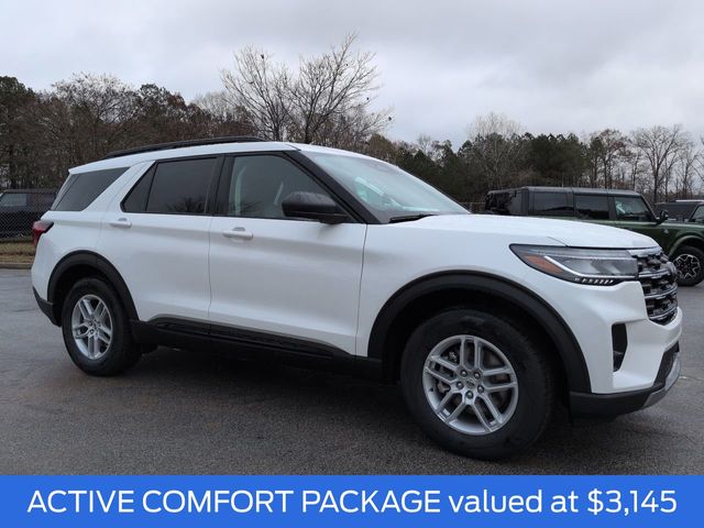 2026 Star White Metallic Tri-Coat 2026 Ford Explorer Active Active 4D Sport Utility RWD 2.3L EcoBoost I-4 Active Comfort Package (Front Fascia, Heated ActiveX Seating Material Captain's Chairs, Heated Steering Wheel, Remote Start System, and Second Row Hvac Controls), Equipment Group 200A Standard Package (8 USB Ports, Active Badging, Active Noise Cancellation, AM/FM Stereo, Black Lower Bodyside Cladding with Chrome Accent, Black Roof-Rack Side Rails, Manual-Folding Sideview Mirrors, Power Liftgate, Vinyl-Wrapped Steering Wheel, and Wheels: 18" Sparkle Silver-Painted Aluminum), Ford Connectivity Package (one-Time Purchase - 7 Years), 3rd row seats: bench, 4-Wheel Disc Brakes, 6 Speakers, ABS brakes, Air Conditioning, Alloy wheels, AM/FM radio: SiriusXM with 360L, Apple CarPlay/Android Auto, Auto High-beam Headlights, Automatic temperature control, Brake assist, Bumpers: body-color, Compass, Delay-off headlights, Driver door bin, Driver vanity mirror, Dual front impact airbags, Dual front side impact airbags, Electronic Stability Control, Emergency communication system: 911 Assist, Exterior Parking Camera Rear, Four wheel independent suspension, Front anti-roll bar, Front Bucket Seats, Front Center Armrest, Front dual zone A/C, Front reading lights, Fully automatic headlights, Heated door mirrors, Illuminated entry, Internet access capable: FordPass Connect 5G, Knee airbag, Low tire pressure warning, Navigation System, Occupant sensing airbag, Outside temperature display, Overhead airbag, Overhead console, Panic alarm, Passenger door bin, Passenger vanity mirror, Power driver seat, Power steering, Power windows, Rear air conditioning, Rear anti-roll bar, Rear reading lights, Rear window defroster, Rear window wiper, Remote keyless entry, Security system, Speed control, Speed-sensing steering, Speed-Sensitive Wipers, Split folding rear seat, Spoiler, Steering wheel mounted audio controls, Tachometer, Telescoping steering wheel, Tilt steering wheel, Traction control, Trip computer, Unique Cloth Captain's Chairs, and Variably intermittent wipers. $1,000 - Exp. 12/31/2026 Retail Trade Assistance. Must trade in a vehicle to qualify $1,000 - Exp. 12/31/2026 Dealer Finance Assistance. Must finance through dealer lender to qualify.