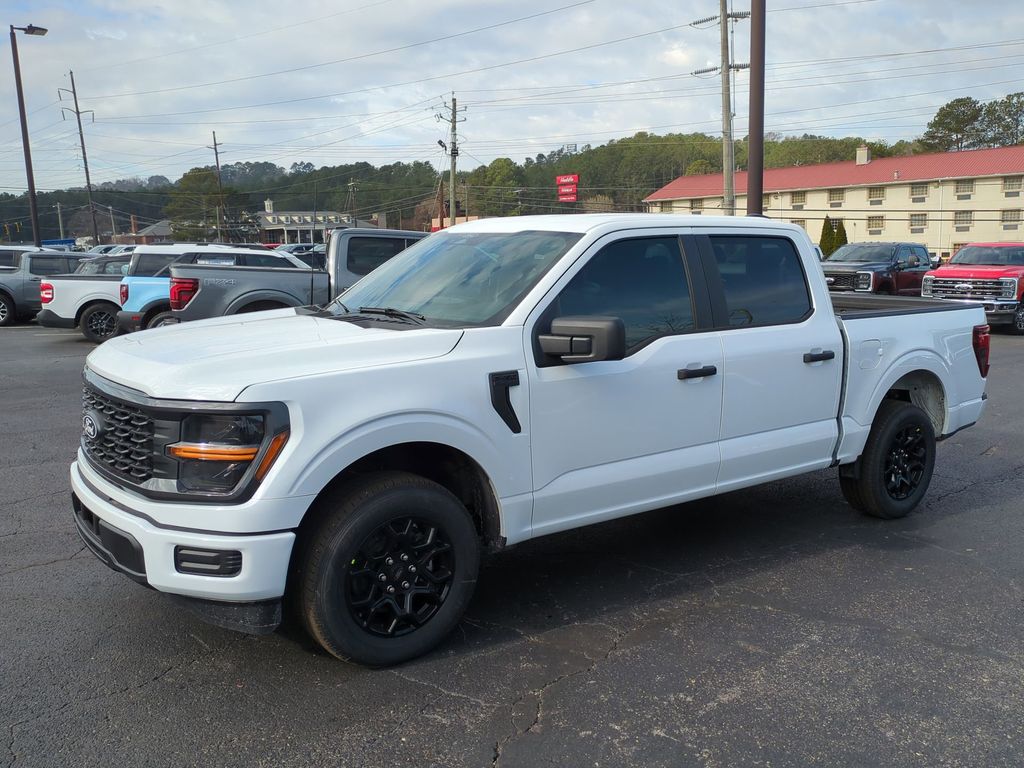 2026 Oxford White 2026 Ford F-150 STX RWD 2.7L V6 EcoBoost 12" LCD Productivity Touchscreen, 5G WiFi Hotspot Telematics, Auto Emergency Braking, Auto LED Headlights, Backup Camera, Blind Spot Monitoring, BLIS w/ Cross Traffic Alert, 4D SuperCrew, 2.7L V6 EcoBoost, 10-Speed Automatic, RWD, 3.55 Axle Ratio, Equipment Group 200B Standard, Ford Connectivity Package (1-Year Included), GVWR: 6,426 lbs Payload Package, Internet access capable: 5G Modem - Ford Connectivity Package, Radio: AM/FM Stereo with SiriusXM 360L, SYNC 4 with Enhanced Voice Recognition, Unique Sport Cloth 40/Console/40 Front-Seats, Wheels: 18" Gloss Black. Equipment Group 200B Standard (3.55 Axle Ratio, Radio: AM/FM Stereo with SiriusXM 360L, SYNC 4 with Enhanced Voice Recognition, Unique Sport Cloth 40/Console/40 Front-Seats, and Wheels: 18" Gloss Black), Ford Connectivity Package (1-Year Included), GVWR: 6,426 lbs Payload Package, Internet access capable: 5G Modem - Ford Connectivity Package, 4D SuperCrew, 2.7L V6 EcoBoost, 10-Speed Automatic, RWD, 4-Wheel Disc Brakes, 6 Speakers, ABS brakes, Air Conditioning, Alloy wheels, AM/FM radio: SiriusXM with 360L, Auto High-beam Headlights, Brake assist, Bumpers: body-color, Compass, Delay-off headlights, Driver door bin, Dual front impact airbags, Dual front side impact airbags, Electronic Stability Control, Emergency communication system: SYNC 4 911 Assist, Front anti-roll bar, Front Bucket Seats, Front Center Armrest, Front reading lights, Front wheel independent suspension, Fully automatic headlights, Heated door mirrors, Illuminated entry, Low tire pressure warning, Occupant sensing airbag, Outside temperature display, Overhead airbag, Overhead console, Panic alarm, Passenger door bin, Passenger vanity mirror, Power door mirrors, Power steering, Power windows, Radio data system, Rear Parking Sensors, Rear step bumper, Rear window defroster, Remote keyless entry, Security system, Speed control, Split folding rear seat, Steering wheel mounted audio controls, Tachometer, Telescoping steering wheel, Tilt steering wheel, Traction control, Trip computer, and Variably intermittent wipers Courtesy Ford and Lincoln of Rome 101 Hwy 411 E Rome, Ga 30161 ROMEFORDLINC.COM 706.235.4453.