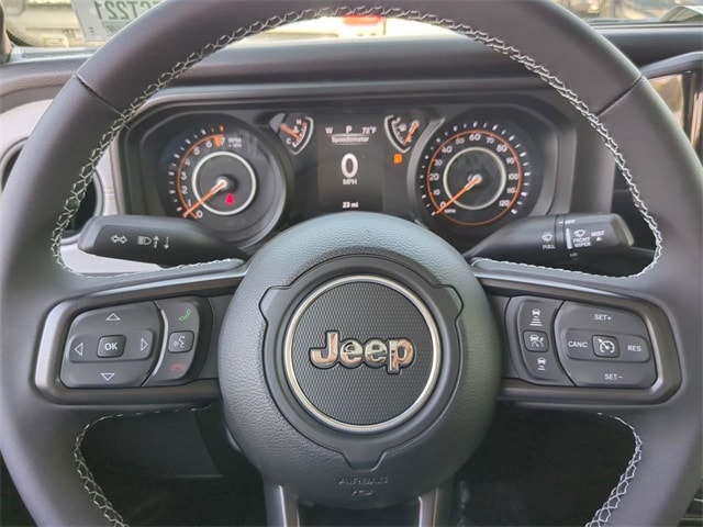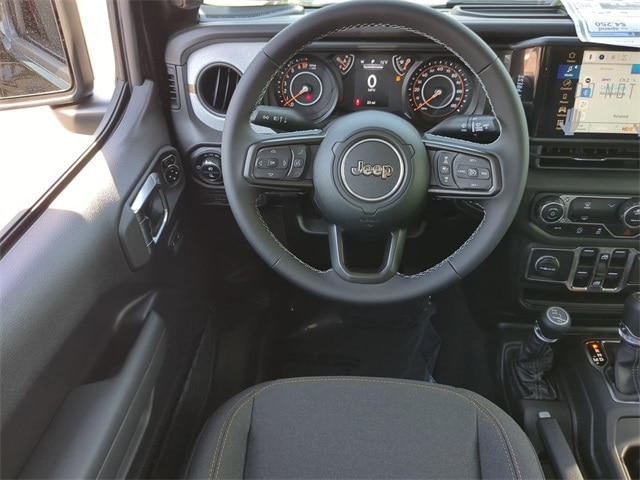 Quick Order Package 24S Sport S (Advanced Brake Assist, Automatic Headlamps, Deep Tint Sunscreen Windows, Enhanced Adaptive Cruise Control, Full Speed Forward Collision Warning Plus, Normal Duty Plus Suspension, Power Heated Mirrors, Premium Wrapped Steering Wheel, Security Alarm, Sun Visors w/Illuminated Vanity Mirrors, and Wheels: 17" x 7.5" Gray), 110 MPH Vehicle Max Speed Calibration, 12.3" Touchscreen Display, 3.73 Rear Axle Ratio, 4-Wheel Disc Brakes, 4G LTE Wi-Fi Hot Spot, 8 Speakers, ABS brakes, Air Conditioning, Alexa Built-In, AM/FM radio: SiriusXM, Apple CarPlay, Apple CarPlay/Android Auto, Black 3-Piece Hard Top, Brake assist, Cloth Low-Back Bucket Seats, Compass, Connectivity - US/Canada, Delay-off headlights, Driver door bin, Driver vanity mirror, Dual front impact airbags, Dual front side impact airbags, Electronic Stability Control, Freedom Panel Storage Bag, Front anti-roll bar, Front Bucket Seats, Front Center Armrest w/Storage, Front fog lights, Front reading lights, Google Android Auto, Illuminated entry, Integrated roll-over protection, Low tire pressure warning, MOPAR All-Weather Slush Mats, Normal Duty Suspension, Occupant sensing airbag, Outside temperature display, Overhead airbag, Panic alarm, ParkView Rear Back-Up Camera, Passenger door bin, Passenger vanity mirror, Power steering, Power windows, Radio data system, Radio: Uconnect 5 w/12.3" Display, Rear anti-roll bar, Rear reading lights, Rear Sliding Window, Rear Window Defroster, Remote keyless entry, Speed control, Split folding rear seat, Steering wheel mounted audio controls, Tachometer, Telescoping steering wheel, Tilt steering wheel, Traction control, Trip computer, USB Host Flip, Variably intermittent wipers, Voltmeter, and Wheels: 17" x 7.5" Black Steel Styled. Price includes: $1000 - 2025 South BC Regional Bonus Cash SCSN. Exp. 01/05/2026 $2250 - 2025 National Bonus Cash . Exp. 01/05/2026