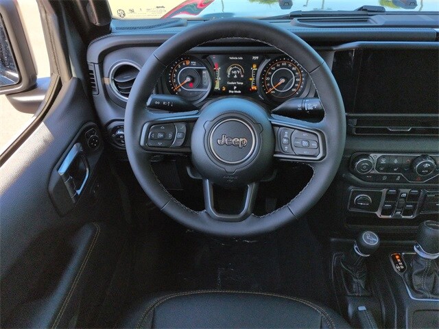 Convenience Group (Corning Gorilla Glass, Daytime Running Lamp System, Emergency/Assistance Call, Front Door Locks 2-Door Passive Entry, Heated Front Seats, Heated Steering Wheel, Remote Start System, and Universal Garage Door Opener), Quick Order Package 24Q High Tide (97 MPH Vehicle Max Speed Calibration, Advanced Brake Assist, Automatic Headlamps, Body Color 3-Piece Hard Top, Body Color Fender Flares (2-Piece), Deep Tint Sunscreen Windows, Freedom Panel Storage Bag, Full Length Floor Console Premium Armrest, Full Speed Forward Collision Warning Plus, Hard Seat Back, High Tide, High Tide Tailgate & Hood Decals, Integrated Radar Camera Module (IRCM), Leather Wrapped Park Brake Handle, Leather Wrapped Shift Knob, Power 4-Way Driver Lumbar Adjust, Power 4-Way Passenger Lumbar Adjust, Power Adjust 8-Way Driver Seat, Power Adjust 8-Way Front Passenger Seat, Power Heated Mirrors, Premium Door Trim Panel, Premium McKinley Trimmed Seats, Premium Wrapped Steering Wheel, Rear Armrest w/Cupholder Seat, Rear Sliding Window, Rear Window Defroster, Security Alarm, Sun Visors w/Illuminated Vanity Mirrors, Wheels: 17" x 7.5" Painted Black, and Willys Suspension), 110 MPH Vehicle Max Speed Calibration, 12.3" Touchscreen Display, 3.73 Rear Axle Ratio, 4-Wheel Disc Brakes, 4G LTE Wi-Fi Hot Spot, 8 Speakers, ABS brakes, Air Conditioning, Alexa Built-In, AM/FM radio: SiriusXM, Apple CarPlay, Apple CarPlay/Android Auto, Brake assist, Cloth Low-Back Bucket Seats, Compass, Connectivity - US/Canada, Delay-off headlights, Driver door bin, Driver vanity mirror, Dual front impact airbags, Dual front side impact airbags, Electronic Stability Control, Front anti-roll bar, Front Bucket Seats, Front Center Armrest w/Storage, Front fog lights, Front reading lights, Google Android Auto, Illuminated entry, Integrated roll-over protection, Low tire pressure warning, MOPAR All-Weather Slush Mats, Normal Duty Suspension, Occupant sensing airbag, Outside temperature display, Overhead airbag, Panic alarm, ParkView Rear Back-Up Camera, Passenger door bin, Passenger vanity mirror, Power steering, Power windows, Radio data system, Radio: Uconnect 5 w/12.3" Display, Rear anti-roll bar, Rear reading lights, Remote keyless entry, Side Steps, Speed control, Split folding rear seat, Steering wheel mounted audio controls, Tachometer, Telescoping steering wheel, Tilt steering wheel, Traction control, Trip computer, USB Host Flip, Variably intermittent wipers, Voltmeter, and Wheels: 17" x 7.5" Black Steel Styled. Price includes: $1000 - 2025 South BC Regional Bonus Cash SCSN. Exp. 01/05/2026 $2250 - 2025 National Bonus Cash . Exp. 01/05/2026
