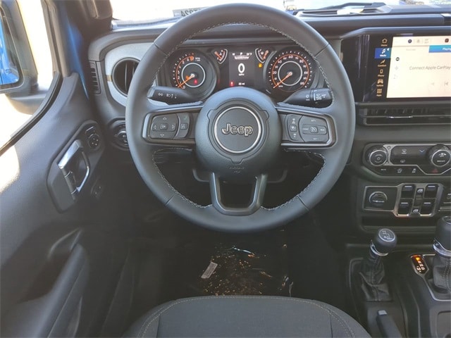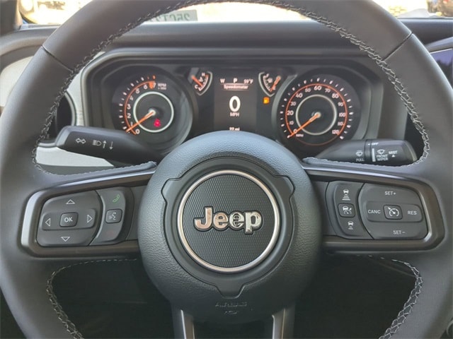 Quick Order Package 24S Sport S (Advanced Brake Assist, Automatic Headlamps, Deep Tint Sunscreen Windows, Enhanced Adaptive Cruise Control, Full Speed Forward Collision Warning Plus, Normal Duty Plus Suspension, Power Heated Mirrors, Premium Wrapped Steering Wheel, Security Alarm, Sun Visors w/Illuminated Vanity Mirrors, and Wheels: 17" x 7.5" Gray), 110 MPH Vehicle Max Speed Calibration, 12.3" Touchscreen Display, 3.73 Rear Axle Ratio, 4-Wheel Disc Brakes, 4G LTE Wi-Fi Hot Spot, 8 Speakers, ABS brakes, Air Conditioning, Alexa Built-In, AM/FM radio: SiriusXM, Apple CarPlay, Apple CarPlay/Android Auto, Black 3-Piece Hard Top, Brake assist, Cloth Low-Back Bucket Seats, Compass, Connectivity - US/Canada, Delay-off headlights, Driver door bin, Driver vanity mirror, Dual front impact airbags, Dual front side impact airbags, Electronic Stability Control, Freedom Panel Storage Bag, Front anti-roll bar, Front Bucket Seats, Front Center Armrest w/Storage, Front fog lights, Front reading lights, Google Android Auto, Illuminated entry, Integrated roll-over protection, Low tire pressure warning, MOPAR All-Weather Slush Mats, Normal Duty Suspension, Occupant sensing airbag, Outside temperature display, Overhead airbag, Panic alarm, ParkView Rear Back-Up Camera, Passenger door bin, Passenger vanity mirror, Power steering, Power windows, Radio data system, Radio: Uconnect 5 w/12.3" Display, Rear anti-roll bar, Rear reading lights, Rear Sliding Window, Rear Window Defroster, Remote keyless entry, Speed control, Split folding rear seat, Steering wheel mounted audio controls, Tachometer, Telescoping steering wheel, Tilt steering wheel, Traction control, Trip computer, USB Host Flip, Variably intermittent wipers, Voltmeter, and Wheels: 17" x 7.5" Black Steel Styled. Price includes: $1000 - 2025 South BC Regional Bonus Cash SCSN. Exp. 01/05/2026 $2250 - 2025 National Bonus Cash . Exp. 01/05/2026