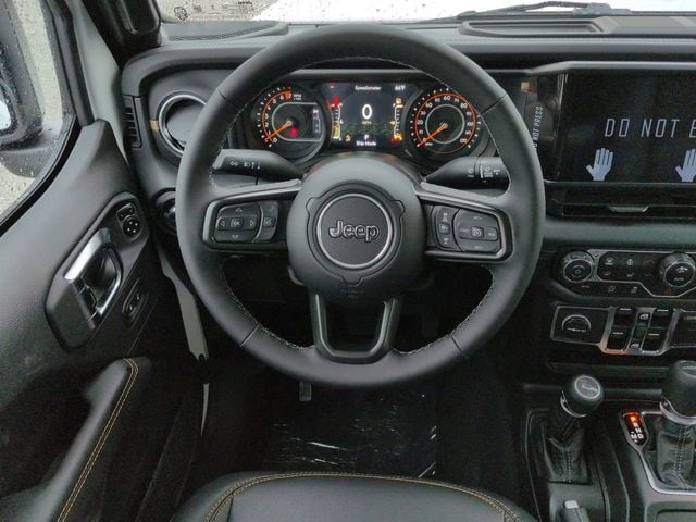 Convenience Group (Corning Gorilla Glass, Daytime Running Lamp System, Emergency/Assistance Call, Front Door Locks 2-Door Passive Entry, Heated Front Seats, Heated Steering Wheel, Remote Start System, and Universal Garage Door Opener), Quick Order Package 24Q High Tide (97 MPH Vehicle Max Speed Calibration, Advanced Brake Assist, Automatic Headlamps, Body Color 3-Piece Hard Top, Body Color Fender Flares (2-Piece), Deep Tint Sunscreen Windows, Freedom Panel Storage Bag, Full Length Floor Console Premium Armrest, Full Speed Forward Collision Warning Plus, Hard Seat Back, High Tide, High Tide Tailgate & Hood Decals, Integrated Radar Camera Module (IRCM), Leather Wrapped Park Brake Handle, Leather Wrapped Shift Knob, Power 4-Way Driver Lumbar Adjust, Power 4-Way Passenger Lumbar Adjust, Power Adjust 8-Way Driver Seat, Power Adjust 8-Way Front Passenger Seat, Power Heated Mirrors, Premium Door Trim Panel, Premium McKinley Trimmed Seats, Premium Wrapped Steering Wheel, Rear Armrest w/Cupholder Seat, Rear Sliding Window, Rear Window Defroster, Security Alarm, Sun Visors w/Illuminated Vanity Mirrors, Wheels: 17" x 7.5" Painted Black, and Willys Suspension), 110 MPH Vehicle Max Speed Calibration, 12.3" Touchscreen Display, 3.73 Rear Axle Ratio, 4-Wheel Disc Brakes, 4G LTE Wi-Fi Hot Spot, 8 Speakers, ABS brakes, Air Conditioning, Alexa Built-In, AM/FM radio: SiriusXM, Apple CarPlay, Apple CarPlay/Android Auto, Brake assist, Cloth Low-Back Bucket Seats, Compass, Connectivity - US/Canada, Delay-off headlights, Driver door bin, Driver vanity mirror, Dual front impact airbags, Dual front side impact airbags, Electronic Stability Control, Front anti-roll bar, Front Bucket Seats, Front Center Armrest w/Storage, Front fog lights, Front reading lights, Google Android Auto, Illuminated entry, Integrated roll-over protection, Low tire pressure warning, MOPAR All-Weather Slush Mats, Normal Duty Suspension, Occupant sensing airbag, Outside temperature display, Overhead airbag, Panic alarm, ParkView Rear Back-Up Camera, Passenger door bin, Passenger vanity mirror, Power steering, Power windows, Radio data system, Radio: Uconnect 5 w/12.3" Display, Rear anti-roll bar, Rear reading lights, Remote keyless entry, Side Steps, Speed control, Split folding rear seat, Steering wheel mounted audio controls, Tachometer, Telescoping steering wheel, Tilt steering wheel, Traction control, Trip computer, USB Host Flip, Variably intermittent wipers, Voltmeter, and Wheels: 17" x 7.5" Black Steel Styled. Price includes: $1000 - 2025 Southeast BC Bonus Cash. Exp. 03/02/2026 $1000 - 2025 Southeast BC Regional Bonus Cash . Exp. 03/02/2026 $2250 - 2025 National Retail Bonus Cash . Exp. 03/02/2026
