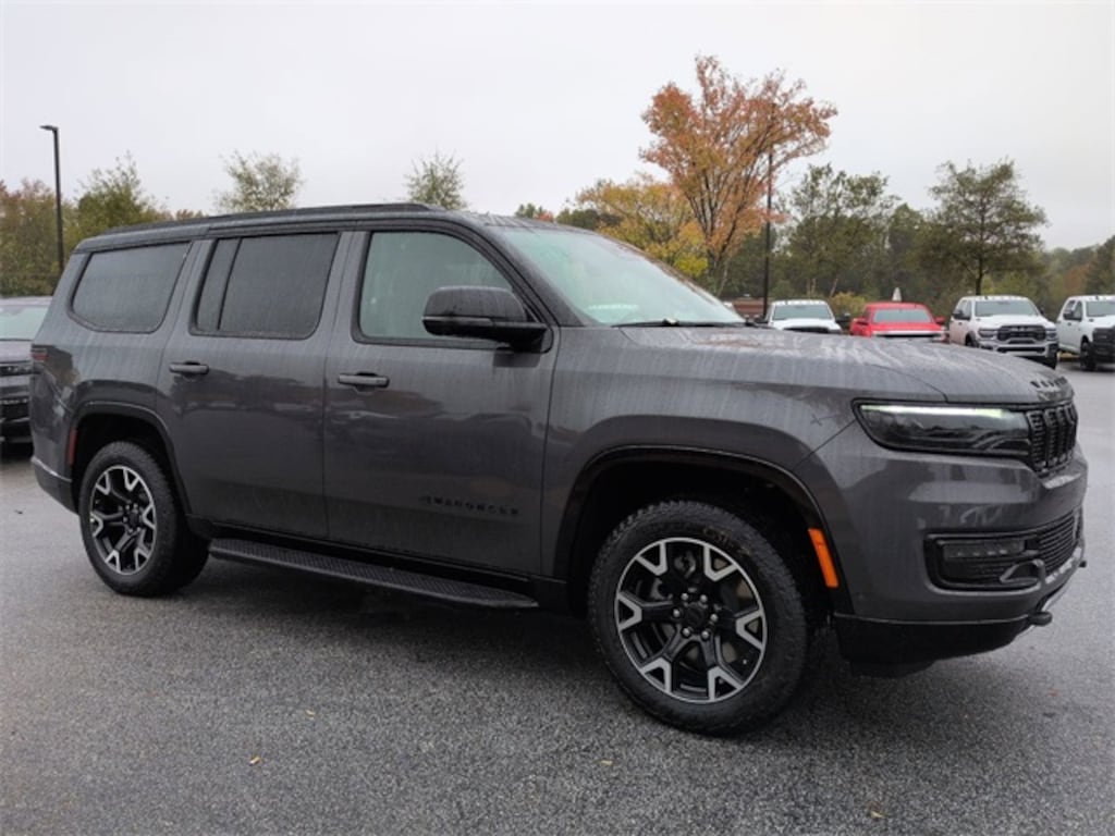 Overland Appearance Package, Quick Order Package 25P Overland (2 Speed On Demand Transfer Case, 3 Panel Sunroof, 60/40 Power Recline 3rd Row Seat, Adjustable Roof Rail Crossbars, All-Season Floor Mats, Auto Adjust In Reverse Exterior Mirrors, Auto High Beam Headlamp Control, Auto Power Folding Exterior Mirrors, Auto Power-Folding Mirrors, Auto-Dimming Exterior Driver Mirror, Black Exterior Accents, Black Roof, Cargo Tray, Electronic Rear Limited Slip Differential, Exterior Mirrors Approach Lamps, Exterior Mirrors w/Memory, Exterior Mirrors w/Supplemental Signals, Fuel Tank Skid Plate Shield, Heated Exterior Mirrors, Heavy-Duty Engine Cooling, Overland Exterior Accents, P&P Park & Unpark Assist w/Stop System, Quadra-Lift Air Suspension, Removable Rear Tow Hook, Selec-Speed Control, Semi Active Damping, Side Distance Warning, Surround View Camera System, Trailer Brake Control, Trailer Hitch Zoom, Vapor Tow Hooks, and Wheels: 20" x 9.0" Machine Face Painted Aluminum), 10 Speakers, 118 MPH Maximum Speed Calibration, 3rd row seats: bench, 4-Wheel Disc Brakes, ABS brakes, Air Conditioning, Alloy wheels, AM/FM radio: SiriusXM with 360L, Anti-whiplash front head restraints, Apple CarPlay/Android Auto, Audio memory, Auto-dimming door mirrors, Auto-dimming Rear-View mirror, Auto-leveling suspension, Automatic temperature control, Brake assist, Bumpers: body-color, Compass, Delay-off headlights, Driver door bin, Driver vanity mirror, Driver's Seat Mounted Armrest, Dual front impact airbags, Dual front side impact airbags, Electronic Stability Control, Emergency communication system: Jeep Connect, Four wheel independent suspension, Front anti-roll bar, Front Bucket Seats, Front Center Armrest w/Storage, Front dual zone A/C, Front fog lights, Front reading lights, Fully automatic headlights, Garage door transmitter, Genuine wood console insert, Genuine wood dashboard insert, Genuine wood door panel insert, Heated door mirrors, Heated front seats, Heated rear seats, Heated steering wheel, Illuminated entry, Knee airbag, Leather Trimmed Bucket Seats, Low tire pressure warning, Memory seat, Navigation System, Normal Duty Suspension, Occupant sensing airbag, Outside temperature display, Overhead airbag, Overhead console, Panic alarm, ParkView Rear Back-Up Camera, Passenger door bin, Passenger seat mounted armrest, Passenger vanity mirror, Power adjustable front head restraints, Power door mirrors, Power driver seat, Power Liftgate, Power passenger seat, Power steering, Power windows, Radio data system, Radio: Uconnect 5 Nav w/10.1" Display, Rain sensing wipers, Rear air conditioning, Rear anti-roll bar, Rear dual zone A/C, Rear reading lights, Rear seat center armrest, Rear window defroster, Rear window wiper, Reclining 3rd row seat, Remote keyless entry, Security system, Speed control, Speed-sensing steering, Speed-Sensitive Wipers, Split folding rear seat, Steering wheel memory, Steering wheel mounted audio controls, Tachometer, Telescoping steering wheel, Tilt steering wheel, Traction control, Trip computer, Turn signal indicator mirrors, Variably intermittent wipers, Ventilated front seats, Voltmeter, and Wheels: 20" x 9.0" Premium 2 Aluminum.