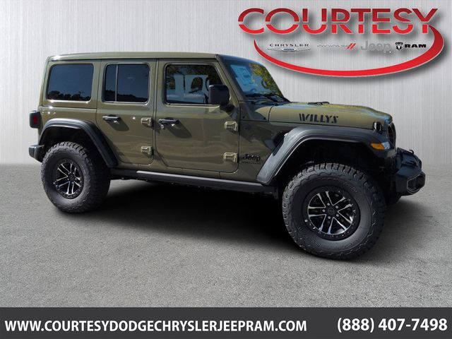 Quick Order Package 24W Willys (4-Wheel Drive Swing Gate Decal, 7 & 4 Pin Wiring Harness, 97 MPH Vehicle Max Speed Calibration, Advanced Brake Assist, Automatic Headlamps, Auxiliary Switches, Black Grille, Class II Receiver Hitch, Conventional Differential Front Axle, Corning Gorilla Glass, Dana M210 Wide HD Tube Front Axle, Dana M220 Wide Rear Axle, Daytime Running Lamps LED Accents, Deep Tint Sunscreen Windows, E-Locker Rear Axle, Enhanced Adaptive Cruise Control, Front LED Fog Lamps, Full Speed Forward Collision Warning Plus, Injection Molded Black Rear Bumper, LED Premium Reflector Headlamps, Mold In Color Bumper w/Gloss Black, Molded in Color Rubicon Highline Flare, MOPAR All-Weather Floor Mats, Off-Road Plus Mode, Power Heated Mirrors, Premium Wrapped Steering Wheel, Security Alarm, Sun Visors w/Illuminated Vanity Mirrors, Wheels: 17" x 7.5" Painted Black, Willy's Suspension, and Willys Hood Decal), Xtreme 35" Tire Package (35" Tire Suspension, Anti-Lock 4-Wheel Disc Perf Brakes, MOPAR Hinge-Gate Reinforcement, Wheel Flare Extensions, and Wheels: 17" x 8" Machined w/Black Pockets), 110 MPH Vehicle Max Speed Calibration, 4-Wheel Disc Brakes, 8 Speakers, ABS brakes, Air Conditioning, Alpine Premium Audio System, AM/FM radio: SiriusXM, Apple CarPlay/Android Auto, Aux Battery, Brake assist, Cloth Low-Back Bucket Seats, Compass, Delay-off headlights, Driver door bin, Driver vanity mirror, Dual front impact airbags, Dual front side impact airbags, Electronic Stability Control, Front anti-roll bar, Front Bucket Seats, Front Center Armrest w/Storage, Front fog lights, Front reading lights, Illuminated entry, Integrated roll-over protection, Low tire pressure warning, Non-Lock Fuel Cap w/o Discriminator, Normal Duty Suspension, Occupant sensing airbag, Outside temperature display, Overhead airbag, Panic alarm, ParkView Rear Back-Up Camera, Passenger door bin, Passenger vanity mirror, Power steering, Power Top Quarter Window Storage Bag, Power windows, Radio data system, Radio: Uconnect 5 w/12.3" Display, Rear anti-roll bar, Rear reading lights, Rear Window Defroster, Rear Window Wiper/Washer, Remote keyless entry, Removable Rear Quarter Windows, Sky 1-Touch Power Top, Speed control, Split folding rear seat, Steering wheel mounted audio controls, Stop-Start Dual Battery System, Tachometer, Telescoping steering wheel, Tilt steering wheel, Traction control, Trip computer, Variably intermittent wipers, and Wheels: 17" x 7.5" Black Steel Styled. Price includes: $1500 - 2025 National Bonus Cash . Exp. 03/02/2026 $2000 - 2025 National Select Inventory Bonus Cash. Exp. 03/02/2026 $2500 - 2025 National Retail Bonus Cash . Exp. 03/02/2026