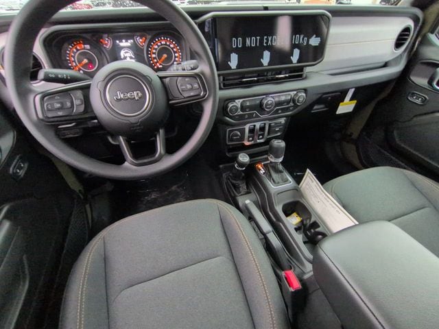 Quick Order Package 22B Sport, 12.3" Touchscreen Display, 3.45 Overall Top Gear Ratio, 4-Wheel Disc Brakes, 4G LTE Wi-Fi Hot Spot, 8 Speakers, ABS brakes, Air Conditioning, AM/FM radio: SiriusXM with 360L, Apple CarPlay, Apple CarPlay/Android Auto, Aux Battery, Black 3-Piece Hard Top, Brake assist, Cloth Low-Back Bucket Seats, Compass, Connectivity - US/Canada, Delay-off headlights, Driver door bin, Driver vanity mirror, Dual front impact airbags, Dual front side impact airbags, Electronic Stability Control, For More Info, Call 800-643-2112, Freedom Panel Storage Bag, Front anti-roll bar, Front Bucket Seats, Front Center Armrest w/Storage, Front fog lights, Front reading lights, Google Android Auto, Illuminated entry, Integrated Center Stack Radio, Integrated roll-over protection, Low tire pressure warning, MOPAR All-Weather Floor Mats, Non-Lock Fuel Cap Without Discriminator, Normal Duty Suspension, Occupant sensing airbag, Outside temperature display, Overhead airbag, Panic alarm, ParkView Rear Back-Up Camera, Passenger door bin, Passenger vanity mirror, Power steering, Power windows, Radio data system, Radio: Uconnect 5 with 12.3" Display, Rear anti-roll bar, Rear reading lights, Rear Window Defroster, Rear Window Wiper/Washer, Remote keyless entry, SiriusXM Radio Service, SiriusXM with 360L, Speed control, Steering wheel mounted audio controls, Stop-Start Dual Battery System, Tachometer, Telescoping steering wheel, Tilt steering wheel, Traction control, Trip computer, Variably intermittent wipers, Wheels: 17" x 7.5" Black Steel Styled, and Wheels: 17" x 7.5" Gray.