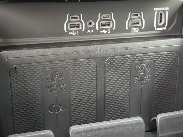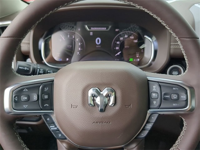 Adaptive Cruise Control, Auto Emergency Braking, Backup Camera, Blind Spot Monitoring, Evasive Steering Assist, Full Speed Auto Collision Warning Plus, Panoramic Sunroof/Moonroof, Parking Sensors, Power Running Boards, Premium Sound Package, Remote Start, Tow Package, Trailer Package, 4D Crew Cab, 3.0L I6, 8-Speed Automatic, 4WD. Advanced Safety Group II (12-Way/1-Way Trailer Connector, Active Driving Assist System, Drowsy Driver Detection, Evasive Steer Assist, Exterior Mirrors Approach Lamps, Intersection Collision Assist System, Surround View Camera System, and Traffic Sign Recognition), Laramie Level 2 Equipment Group (14.4" Touchscreen Display, 4G LTE Wi-Fi Hot Spot, Apple CarPlay, Cluster 12" TFT Color Display, Connected Travel & Traffic Services, Connectivity - US/Canada, Google Android Auto, GPS Antenna Input, GPS Navigation, harman/kardon 19 Speaker Premium Sound, HD Radio, Integrated Voice Command w/Bluetooth, Power Tailgate, Radio: Uconnect 5 Nav w/14.4" Display, Rain Sensitive Windshield Wipers, SiriusXM w/360L, and USB Host Flip), Quick Order Package 21H Laramie, Technology Group (Heads-Up Display and LED CHMSL Lamp), Towing Technology Group (Trailer Hitch Line-Up Assist), Trailer Tow Group (Auto Power-Folding Mirrors, Auto-Dimming Exterior Driver Mirror, Auto-Dimming Exterior Passenger Mirror, Black Exterior Mirrors, Chrome Exterior Mirrors, Exterior Mirrors Courtesy Lamps, Exterior Mirrors w/Heating Element, Exterior Mirrors w/Memory, Exterior Mirrors w/Supplemental Signals, Forward & Reverse Utility Lights, Mirror Clearance/Running Lights, Power Telescoping Mirrors, Power-Adjustable Convex Aux Mirrors, Trailer Brake Control, Trailer Light Check, Trailer Reverse Steering Control, Trailer Tire Pressure Monitoring System, and Trailer Tow Mirrors), 4D Crew Cab, 3.0L I6, 8-Speed Automatic, 4WD, 10 Speakers, 3 Rear Seat Head Restraints, 3.55 Rear Axle Ratio, 4 Way Front Headrests, 4-Wheel Disc Brakes, ABS brakes, Active Cruise Control, Air Conditioning, Alloy wheels, AM/FM radio: SiriusXM with 360L, Anti-Spin Differential Rear Axle, Apple CarPlay/Android Auto, Audio memory, Auto High-beam Headlights, Auto-dimming door mirrors, Auto-dimming Rear-View mirror, Automatic temperature control, Brake assist, Bumpers: chrome, Compass, Convex Wide-Angle Exterior Mirror Insert, Delay-off headlights, Dome Dual LED Reading Lamp, Driver door bin, Driver Seat Memory, Driver vanity mirror, Dual front impact airbags, Dual front side impact airbags, Dual-Pane Panoramic Sunroof, Electronic Stability Control, Exterior Front Lighting Animation, Exterior Rear Lighting Animation, Front anti-roll bar, Front Center Armrest w/Storage, Front dual zone A/C, Front fog lights, Front reading lights, Front Seat Back Map Pockets, Front wheel independent suspension, Fully automatic headlights, Garage door transmitter, Heated door mirrors, Heated Front Seats, Heated front seats, Heated rear seats, Heated Steering Wheel, Heated steering wheel, Illuminated entry, Leather steering wheel, Leather Trim 40/20/40 Bench Seat, LED Dome/Reading Lamp, Low tire pressure warning, Manufacturer's Statement of Origin, Memory seat, MOPAR Front & Rear Rubber Floor Mats, Occupant sensing airbag, Outside temperature display, Overhead airbag, Overhead console, Panic alarm, ParkView Rear Back-Up Camera, Passenger door bin, Passenger vanity mirror, Power 2-Way Driver Lumbar Adjust, Power 2-Way Passenger Lumbar Adjust, Power Adjust 8-Way Front Passenger Seat, Power Deployable Running Boards, Power door mirrors, Power driver seat, Power passenger seat, Power steering, Power windows, Radio data system, Radio: Uconnect 5 Nav w/12.0" Display, RAM Grille Badge - Chrome, Rear anti-roll bar, Rear reading lights, Rear seat center armrest, Rear step bumper, Remote keyless entry, Security system, Speed control, Split folding rear seat, Stee