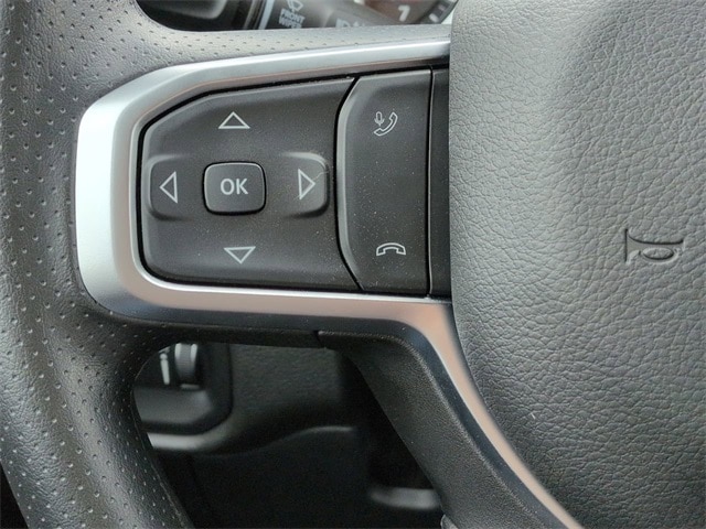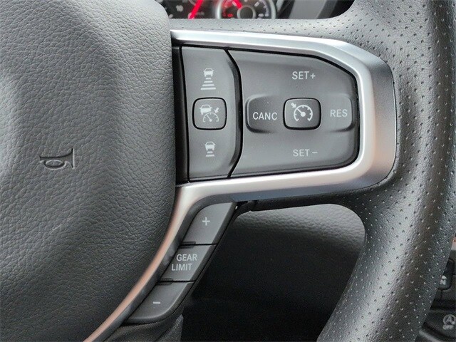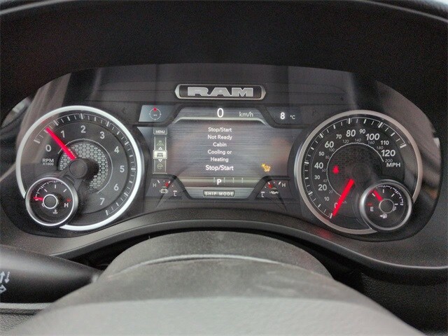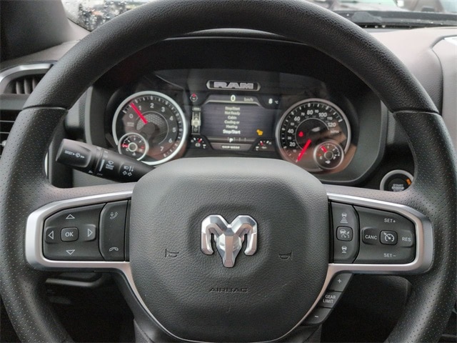 3.21 Rear Axle Ratio, 4 Way Front Headrests, 4-Wheel Disc Brakes, 40/20/40 Split Bench Seat, 6 Speakers, ABS brakes, Air Conditioning, AM/FM radio, Anti-Spin Differential Rear Axle, Apple CarPlay/Android Auto, Auto High-beam Headlights, Black Exterior Mirrors, Brake assist, Compass, Delay-off headlights, Driver door bin, Dual front impact airbags, Dual front side impact airbags, Electronic Stability Control, Exterior Mirrors w/Heating Element, Front anti-roll bar, Front Center Armrest, Front reading lights, Front wheel independent suspension, Fully automatic headlights, Heated door mirrors, Heavy Duty Vinyl 40/20/40 Split Bench Seat, Illuminated entry, Low tire pressure warning, Manual Adjust 4-Way Driver Seat, Manual Adjust 4-Way Front Passenger Seat, Manual Folding Exterior Mirrors, Mopar Black Tubular Side Steps, Occupant sensing airbag, Outside temperature display, Overhead airbag, Overhead console, Panic alarm, ParkView Rear Back-Up Camera, Passenger door bin, Passenger vanity mirror, Power door mirrors, Power steering, Power windows, Radio data system, Radio: Uconnect 5 W w/8.4" Display, RAM Grille Badge - Black, Rear anti-roll bar, Rear step bumper, Remote keyless entry, Speed control, Tachometer, Telescoping steering wheel, Tilt steering wheel, Traction control, Variably intermittent wipers, Voltmeter, and Wheels: 18" x 7.5" Steel Painted.