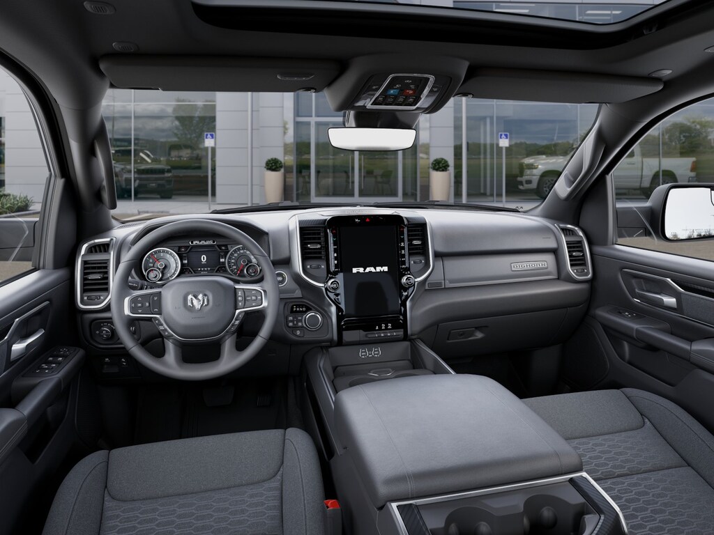 Big Horn Level 2 Equipment Group (115V Auxiliary Power Outlet, 115V Auxiliary Rear Power Outlet, 12" Touchscreen Display, 2nd Row in Floor Storage Bins, 3 Rear Seat Head Restraints, 4 Way Front Headrests, 400W Inverter, 4G LTE Wi-Fi Hot Spot, 9 Amplified Speakers with Subwoofer, Air Conditioning ATC with Dual Zone Control, Apple CarPlay, Auto Power-Folding Mirrors, Auto-Dimming Exterior Driver Mirror, Auto-Dimming Rear-View Mirror, Black Exterior Mirrors, Black Premium Power Mirrors, Body Color Fender Flares, Bucket Seats, Center Console Parts Module, Cluster 7.0" TFT Color Display, Configurable Drive Mode, Connected Travel and Traffic Services, Connectivity - US/Canada, Convex Wide-Angle Exterior Mirror Insert, Deluxe Cloth Bucket Seats, Disassociated Touchscreen Display, Exterior Mirrors Courtesy Lamps, Exterior Mirrors with Heating Element, Exterior Mirrors with Supplemental Signals, Front Seat Back Map Pockets, Full Length Floor Console, Global Telematics Box Module, Glove Box Lamp, Google Android Auto, GPS Antenna Input, GPS Navigation, HD Radio, Heated Front Seats, Heated Steering Wheel, Integrated Center Stack Radio, Integrated Voice Command with Bluetooth, Leather Wrapped Steering Wheel, LED Dome Lamp with on/Off Switch, LED Footwell Lighting, Manual Adjust 4-Way Front Passenger Seat, Media Hub with 2 Charge Only USBs, Overhead LED Lamps, Power 2-Way Driver Lumbar Adjust, Power Adjust 8-Way Driver Seat, Power Adjustable Pedals, Premium Overhead Console, Radio: Uconnect 5 Navigation with 12.0" Display, Rear 60/40 Folding Seat, Rear Center Armrest, Rear Power Sliding Window, Rear Window Defroster, Remote Tailgate Release, Security Alarm, SiriusXM Radio Service, SiriusXM with 360L, Steering Wheel Mounted Audio Controls, Sun Visors with Illuminated Vanity Mirrors, Universal Garage Door Opener, and USB Host Flip), Night Edition (Accent Color Door Handles, Accent Color Premium Power Mirrors, Accent Color Tailgate Handle, Anti-Spin Differential Rear Axle, Black Exterior Truck Badging, Black Headlamp Bezels, Black Interior Accents, Black Painted Exterior Mirrors Caps, Black Tail Lamp Bezels, Body Color Front Bumper, Body Color Rear Bumper with Step Pads, Dual Exhaust with Black Tips, Grille Black Surround Black Mesh, RAM Grille Badge - Black, and Wheels: 20" x 9.0" Aluminum Painted Clad), Quick Order Package 27Z Big Horn, 4-Wheel Disc Brakes, 48V Belt Starter Generator, 6 Speakers, ABS brakes, Air Conditioning, Alloy wheels, AM/FM radio, Apple CarPlay/Android Auto, Auto High-beam Headlights, Brake assist, Bumpers: chrome, Cloth Bucket Seats, Compass, Delay-off headlights, Dome Dual LED Reading Lamp, Driver door bin, Dual front impact airbags, Dual front side impact airbags, Dual-Pane Panoramic Sunroof, Electronic Stability Control, Front anti-roll bar, Front Bucket Seats, Front Center Armrest w/Storage, Front fog lights, Front reading lights, Front wheel independent suspension, Fully automatic headlights, Heated door mirrors, Illuminated entry, Low tire pressure warning, Manual Adjust 4-Way Driver Seat, Manual Folding Exterior Mirrors, MOPAR Front and Rear Rubber Floor Mats, Occupant sensing airbag, Outside temperature display, Overhead airbag, Overhead console, Panic alarm, ParkView Rear Back-Up Camera, Passenger door bin, Passenger vanity mirror, Power door mirrors, Power steering, Power windows, Radio data system, Radio: Uconnect 5 W with 8.4" Display, RAM Grille Badge - Chrome, Rear anti-roll bar, Rear step bumper, Remote keyless entry, Speed control, Supplier Part Tracking (J-1), Tachometer, Telescoping steering wheel, Tilt steering wheel, Traction control, Trip computer, Variably intermittent w Price includes: $1000 - 2026 Southeast BC Retail Bonus Cash. Exp. 03/02/2026 $3500 - 2026 National Retail Consumer Cash . Exp. 0