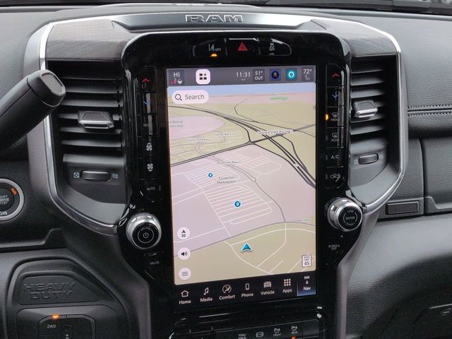 Laramie Trim Group (#1 Seat Foam Cushion, 115V Auxiliary Power Outlet, 115V Auxiliary Rear Power Outlet, 12.0" Touchscreen Display, 17 Speaker Harman/Kardon Premium Sound, 2 Way Rear Headrest Seat, 2-Door Passive Entry, Front Door Locks, 4 Way Front Headrests, 400W Inverter, 4G LTE Wi-Fi Hot Spot, Air Conditioning ATC with Dual Zone Control, Alexa Built-in, Apple CarPlay, Auto High Beam Headlamp Control, Bi-Function LED Projector Headlamps, Body Color Door Handles, Body Color Fender Flares, Bucket Seats, CHMSL Lamp with Camera, Chrome Billets/Accents Grille, Cluster 12" TFT Color Display, Connected Travel and Traffic Services, Connectivity - US/Canada, Courtesy Lamps, Digital Rearview Mirror, Disassociated Touchscreen Display, Dual Glove Boxes, Dual Wireless Charging Pad, Foam Bottle Insert (door Trim Panel), Folding Flat Load Floor Storage, For Details, Visit DriveUconnect.com, For More Info, Call 800-643-2112, Front Door Accent Lighting, Front Seat Back Map Pockets, Full Length Upgraded Floor Console, Global Telematics Box Module, Glove Box Lamp, Google Android Auto, GPS Antenna Input, GPS Navigation, HD Radio, Heated 2nd Row Seats, High Back Seats, Highline Door Trim Panel, Integrated Voice Command with Bluetooth, Leather Trimmed Bucket Seats, LED Daytime Running Headlamps, LED Dome Lamp with on/Off Switch, LED Interior Lighting, Locking Lower Glove Box, Luxury Steering Wheel, Media Hub with 2 Charge Only USBs, Mirror-Mounted Aux Reverse Lamps, Off-Road Information Pages, Overhead LED Lamps, Painted Front Bumper, Painted I/P Bezels with Premium Film, ParkSense Front/Rear Park Assist System, Power 2-Way Passenger Lumbar Adjust, Power Adjust 8-Way Driver Seat, Power Adjust 8-Way Front Passenger Seat, Power Rear Sliding Window, Premium Overhead Console, Radio: Uconnect 5 Navigation with 12.0" Display, Rain Sensitive Windshield Wipers, Rear 60/40 Folding Seat, Rear Door Accent Lighting, Rear Window Defroster, Remote Start System, SiriusXM Radio Service, SiriusXM with 360L, Steering Wheel Mounted Audio Controls, Sun Visors with Illuminated Vanity Mirrors, Temperature and Compass Gauge, Trailer Tow Pages, Universal Garage Door Opener, Ventilated Front Seats, and Wheels: 18" x 8.0" Diamond Cut Aluminum), Quick Order Package 25Z Big Horn (40/20/40 Split Bench Seat, Acoustic Front Door Glass, Black Exterior Mirrors, Black Power Heated Fold Telescope Mirrors, Black-Out Tape, Body Insulation, Bright Front Bumper, Center Hub, Chrome Grille Surround, Cloth 40/20/40 Bench Seat, Exterior Mirrors Courtesy Lamps, Exterior Mirrors with Heating Element, Exterior Mirrors with Supplemental Signals, Front Armrest with Cupholders, Manual Adjust 4-Way Driver Seat, Manual Adjust 4-Way Front Passenger Seat, Manual Folding Exterior Mirrors, Manual Telescoping Mirrors, Matte Black Mesh Grille with Chrome, Mirror Running Lights, Painted I/P Bezels with Hydrographics, Passenger Sun Visor with Illuminated Mirror, Power Adjust Mirrors, Power-Adjustable Convex Aux Mirrors, Premium Vinyl Door Trim with Map Pocket, RAM Door Badges, Rear Folding Seat, Remote USB Port - Charge Only, Satin Chrome Key Fob, Storage Tray, Tinted Acoustic Windshield Glass, Trailer Brake Control, Trailer Light Check, Traveler/Mini Trip Computer, and Wheels: 18" x 8.0" Polished Aluminum), Safety Group (Adaptive Steering System, Drowsy Driver Detection, Lane Keep Assist, and Security Alarm), 11.50" Dual Wheels Rear Axle, 4-Wheel Disc Brakes, 6 Speakers, 6000# Front Axle with Hub Extension, ABS brakes, Air Conditioning, AM/FM radio: SiriusXM, Apple CarPlay/Android Auto, Black Wheel Center Hub, Compass, Delay-off headlights, Driver door bin, Dual front impact airbags, Dual Rear Wheels, Electronic Stability Control, Emergency communication system: RAM Connect, Fro Price includes: $2500 - 2026 National Bonus Cash . Exp. 0