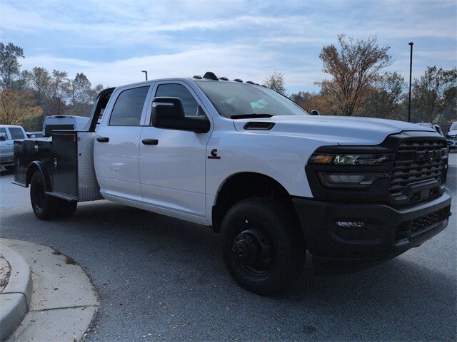 Quick Order Package 25A Tradesman, Tradesman Level 1 Equipment Group (Black Exterior Mirrors, Black Power Heated Fold Telescope Mirrors, Exterior Mirrors Courtesy Lamps, Exterior Mirrors with Heating Element, Exterior Mirrors with Supplemental Signals, Manual Folding Exterior Mirrors, Manuarl Telescoping Mirrors, Mirror Running Lights, Power Adjust Mirrors, Power-Adjustable Convex Aux Mirrors, Rear Window Defroster, Trailer Brake Control, and Trailer Light Check), 11.50" Dual Wheels Rear Axle, 2 Way Rear Headrest Seat, 4-Wheel Disc Brakes, 40/20/40 Split Bench Seat, 4G LTE Wi-Fi Hot Spot, 6 Speakers, 6000# Front Axle with Hub Extension, ABS brakes, Air Conditioning, AM/FM radio: SiriusXM, Apple CarPlay, Apple CarPlay/Android Auto, Black Wheel Center Hub, Center Hub, Compass, Connectivity - US/Canada, Delay-off headlights, Driver door bin, Dual front impact airbags, Dual Rear Wheels, Electronic Stability Control, Emergency communication system: RAM Connect, For Details, Visit DriveUconnect.com, Front anti-roll bar, Front Armrest with Cupholders, Front Center Armrest w/Storage, Front fog lights, Front License Plate Bracket, Front reading lights, Fully automatic headlights, Global Telematics Box Module, Google Android Auto, GPS Antenna Input, HD Vinyl 40/20/40 Split Bench Seat, Illuminated entry, Integrated Voice Command with Bluetooth, Manual Adjust 4-Way Driver Seat, Manual Adjust 4-Way Front Passenger Seat, Nexen Brand Tires, Occupant sensing airbag, Outside temperature display, Overhead console, Panic alarm, ParkView Rear Back-Up Camera, Passenger door bin, Passenger vanity mirror, Power steering, Power windows, Radio data system, Radio: Uconnect 5 with 8.4" Display, Rear anti-roll bar, Rear Folding Seat, Remote keyless entry, Remote USB Port - Charge Only, Speed control, Storage Tray, Tachometer, Temperature and Compass Gauge, Tilt steering wheel, Traction control, Variably intermittent wipers, Voltmeter, Wheels: 17" x 6.0" Black Painted Steel, and Wheels: 18" x 8.0" Steel PainteD. Price includes $29,995 dealer added accessories.