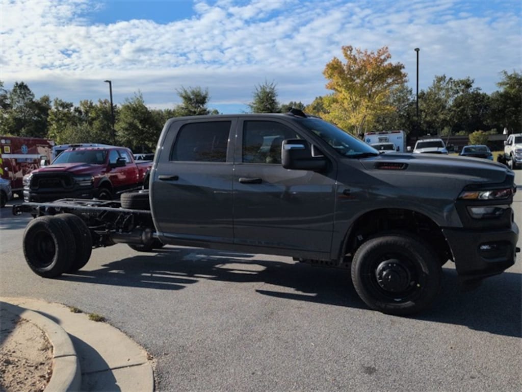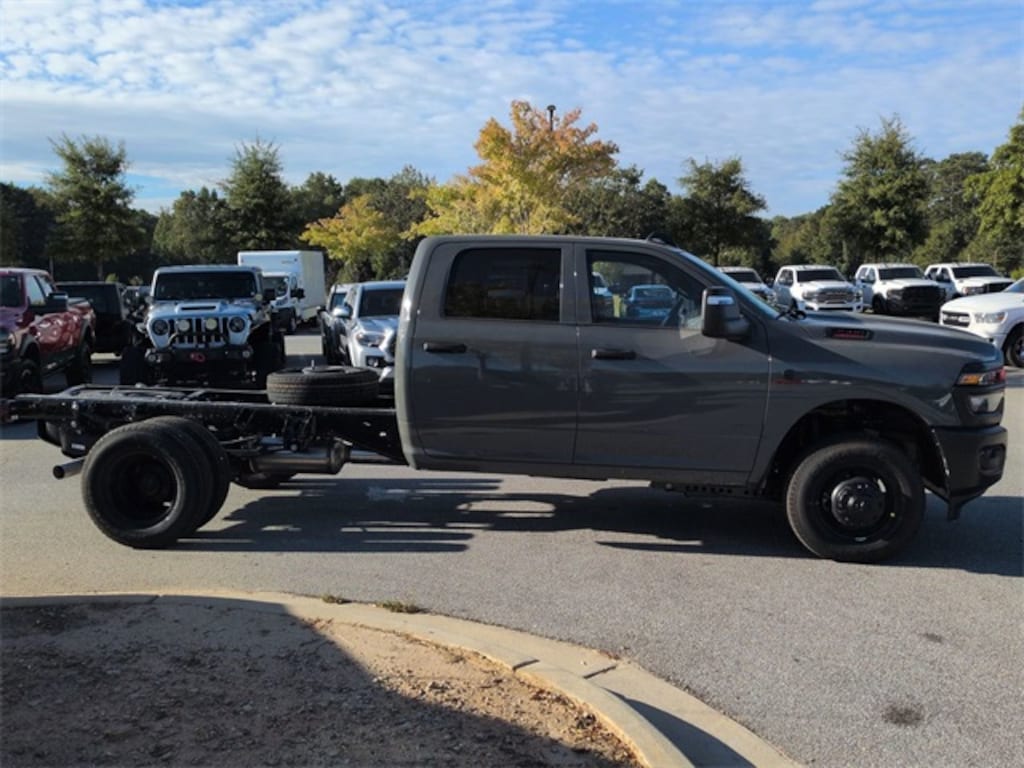 Quick Order Package 25A Tradesman, Tradesman Level 1 Equipment Group (Black Exterior Mirrors, Black Power Heated Fold Telescope Mirrors, Exterior Mirrors Courtesy Lamps, Exterior Mirrors w/Heating Element, Exterior Mirrors w/Supplemental Signals, Manual Folding Exterior Mirrors, Manual Telescoping Mirrors, Mirror Running Lights, Power Adjust Mirrors, Power-Adjustable Convex Aux Mirrors, Rear Window Defroster, Trailer Brake Control, and Trailer Light Check), 11.50" Dual Wheels Rear Axle, 2 Way Rear Headrest Seat, 4-Wheel Disc Brakes, 40/20/40 Split Bench Seat, 4G LTE Wi-Fi Hot Spot, 6 Speakers, 6000# Front Axle w/Hub Ext, ABS brakes, Air Conditioning, AM/FM radio: SiriusXM, Apple CarPlay, Apple CarPlay/Android Auto, Black Wheel Center Hub, Center Hub, Compass, Connectivity - US/Canada, Delay-off headlights, Driver door bin, Dual front impact airbags, Dual Rear Wheels, Electronic Stability Control, Emergency communication system: RAM Connect, For Details, Visit DriveUconnect.com, Front anti-roll bar, Front Armrest w/Cupholders, Front Center Armrest w/Storage, Front fog lights, Front License Plate Bracket, Front reading lights, Fully automatic headlights, Global Telematics Box Module (TBM), Google Android Auto, GPS Antenna Input, HD Vinyl 40/20/40 Split Bench Seat, Illuminated entry, Integrated Voice Command w/Bluetooth, Manual Adjust 4-Way Driver Seat, Manual Adjust 4-Way Front Passenger Seat, Nexen Brand Tires, Occupant sensing airbag, Outside temperature display, Overhead console, Panic alarm, ParkView Rear Back-Up Camera, Passenger door bin, Passenger vanity mirror, Power steering, Power windows, Radio data system, Radio: Uconnect 5 w/8.4" Display, Rear anti-roll bar, Rear Folding Seat, Remote keyless entry, Remote USB Port - Charge Only, Speed control, Storage Tray, Tachometer, Temperature & Compass Gauge, Tilt steering wheel, Traction control, Variably intermittent wipers, Voltmeter, Wheels: 17" x 6.0" Black Painted Steel, and Wheels: 18" x 8.0" Steel PainteD.