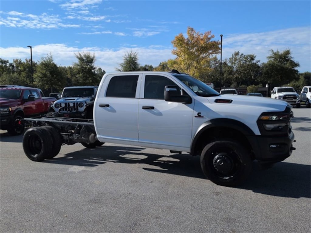 Cold Weather Group (Engine Block Heater and MOPAR Winter Front Grille Cover), Quick Order Package 25A Tradesman, Tradesman Level 2 Equipment Group (115V Auxiliary Power Outlet, 12.0" Touchscreen Display, 400W Inverter, 4G LTE Wi-Fi Hot Spot, Air Conditioning ATC w/Dual Zone Control, Alexa Built-In, Apple CarPlay, Black Exterior Mirrors, Black Power Heated Fold Telescope Mirrors, Connected Travel & Traffic Services, Connectivity - US/Canada, Digital Rearview Mirror, Disassociated Touchscreen Display, Exterior Mirrors Courtesy Lamps, Exterior Mirrors w/Heating Element, Exterior Mirrors w/Supplemental Signals, For Details, Visit DriveUconnect.com, For More Info, Call 800-643-2112, Global Telematics Box Module (TBM), Google Android Auto, GPS Antenna Input, GPS Navigation, HD Radio, Integrated Voice Command w/Bluetooth, Manual Folding Exterior Mirrors, Manual Telescoping Mirrors, Mirror Running Lights, Off-Road Info Pages, Power Adjust Mirrors, Power Rear Sliding Window, Power-Adjustable Convex Aux Mirrors, Radio: Uconnect 5 Nav w/12.0" Display, Rear Window Defroster, Remote Start System, SiriusXM Radio Service, SiriusXM w/360L, Temperature & Compass Gauge, Tinted Acoustic Windshield Glass, Trailer Brake Control, Trailer Light Check, and Trailer Tow Pages), 4-Wheel Disc Brakes, 4.44 Axle Ratio, 40/20/40 Split Bench Seat, 6 Speakers, ABS brakes, Air Conditioning, AM/FM radio: SiriusXM, Apple CarPlay/Android Auto, Cargo & CHMSL Lamp, Compass, Delay-off headlights, Driver door bin, Dual front impact airbags, Dual rear wheels, Electronic Stability Control, Emergency communication system: RAM Connect, Front anti-roll bar, Front Armrest w/Cupholders, Front Center Armrest w/Storage, Front fog lights, Front License Plate Bracket, Front reading lights, Fully automatic headlights, Manual Adjust 4-Way Driver Seat, Manual Adjust 4-Way Front Passenger Seat, Occupant sensing airbag, Outside temperature display, Overhead console, Panic alarm, ParkView Rear Back-Up Camera, Passenger door bin, Passenger vanity mirror, Power 2-Way Driver Lumbar Adjust, Power steering, Power Take-Off Right/Left, Power windows, Radio data system, Radio: Uconnect 5 w/8.4" Display, Rear anti-roll bar, Rear Folding Seat, Rear reading lights, Remote keyless entry, Remote USB Port - Charge Only, Speed control, Tachometer, Tilt steering wheel, Traction control, Variably intermittent wipers, Voltmeter, and Wheels: 19.5" x 6.0" Black Painted SteeL.
