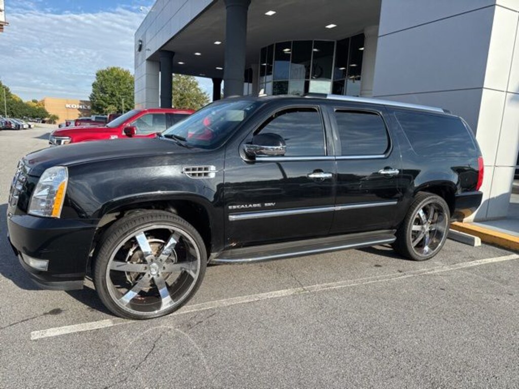 This 2013 Cadillac Escalade ESV Luxury in Black Raven features: 4D Sport Utility, Vortec 6.2L V8 SFI VVT, 6-Speed Automatic HD Electronic with Overdrive, AWD, **LOCAL TRADE**, 10 Speakers, 22" x 9" 7-Spoke Chromed Aluminum Wheels, 2nd Row Power Seat Release, 3rd Row DVD Screen, 3rd Row Seating, 3rd row seats: split-bench, 4-Wheel Disc Brakes, ABS brakes, Adaptive Ride Package, Adaptive suspension, Adaptive Suspension, Adjustable pedals, AM/FM radio: SiriusXM, AM/FM Stereo w/Navigation, Auto High-beam Headlights, Auto tilt-away steering wheel, Auto-dimming door mirrors, Auto-dimming Rear-View mirror, Auto-leveling suspension, Automatic temperature control, Backup Camera, Blind Spot Monitoring, Bluetooth w/ Audio Streaming, Brake assist, Compass, Delay-off headlights, Electronic Stability Control, Emergency communication system: OnStar Directions & Connections, Exterior Parking Camera Rear, Front Center Armrest w/Storage, Front dual zone A/C, Front wheel independent suspension, Fully automatic headlights, Garage door transmitter, Heated & Cooled Front Bucket Seats, Heated door mirrors, Heated rear seats, Heated Steering Wheel, Heated steering wheel, High intensity discharge headlights: Xenon, Illuminated entry, IntelliBeam Headlamps, Leather Seats, Leather steering wheel, Low tire pressure warning, Luxury Package, Magnetic Ride Control Suspension Package, Memory seat, Multi Zone Climate Control, Navigation System, NavTraffic, Nuance Leather Seating Surfaces, Outside temperature display, Panic alarm, Parking Sensors, Pedal memory, Power door mirrors, Power Liftgate, Power Mirror Package, Power Package, Power passenger seat, Power Tilt-Sliding Sunroof w/Express-Open/Close, Preferred Equipment Group 1SB, Rear air conditioning, Rear audio controls, Rear window wiper, Remote keyless entry, Remote Start, Reverse Brake Assist, Reverse Sensing, Roof rack, Security system, Side Blind Zone Alert, SIRIUSXM Satellite Radio, Speed control, Split folding rear seat, Spoiler, Steering wheel memory, Steering wheel mounted audio controls, Sunroof/Moonroof, Tilt steering wheel, Tow Package, Traction control, Trailer Package, Trip computer, Turn signal indicator mirrors, USB Port Audio System Feature, Ventilated front seats.