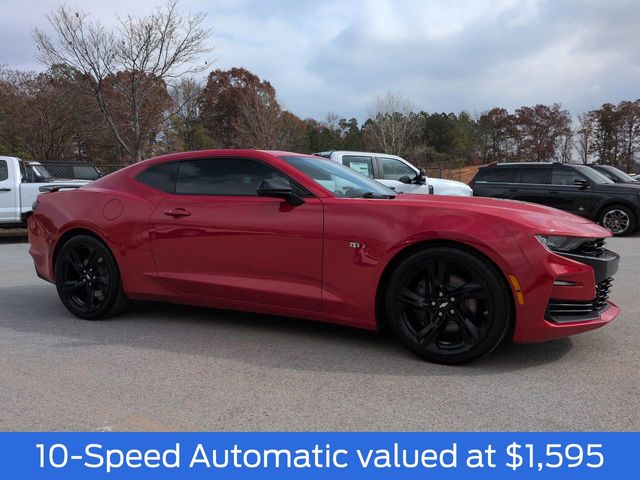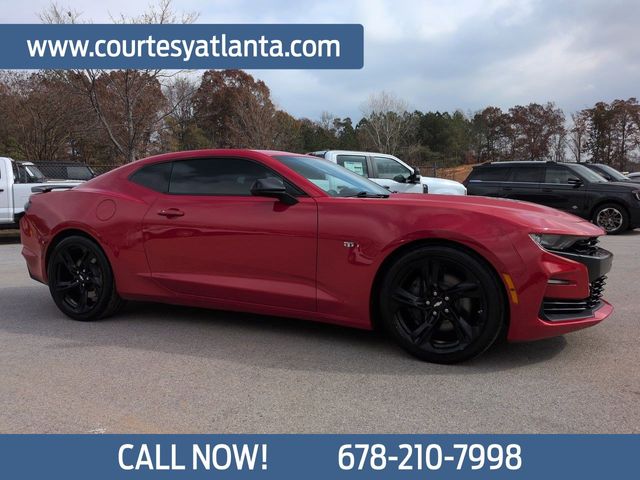 This 2019 Chevrolet Camaro SS in Red Hot features: 2D Coupe, 6.2L V8, 10-Speed Automatic, RWD, **LOCAL TRADE**, 4-Wheel Disc Brakes, 6-Speaker Audio System Feature, 6-Way Power Front Passenger Seat Adjuster, 8-Way Power Driver Seat Adjuster, ABS brakes, Apple CarPlay/Android Auto, Automatic temperature control, Black Appearance Package, Bluetooth® For Phone, Brake assist, Compass, Delay-off headlights, Dual Mode Exhaust, Electronic Stability Control, Exterior Parking Camera Rear, Four wheel independent suspension, Front Center Armrest, Front Sport Bucket Seats, Fully automatic headlights, Illuminated entry, Illuminated Sill Plates (LPO), Leather Shift Knob, Low tire pressure warning, Paddle-Shift Manual Controls, Panic alarm, Performance Package, Power door mirrors, Power passenger seat, Power windows, Preferred Equipment Group 1SS, Preferred Equipment Package, Premium audio system: Chevrolet Infotainment System, Radio data system, Radio: Chevrolet Infotainment 3 Plus System, Rear Spoiler, Remote keyless entry, Remote Start, Remote Vehicle Starter System, Security system, SiriusXM Radio, Speed control, Speed-sensing steering, Spoiler, Steering wheel mounted audio controls, Telescoping steering wheel, Tilt steering wheel, Trip computer, Variably intermittent wipers, Wheels: 20" x 8.5" Fr & 20" x 9.5" Rr 5-Spoke Alum.
