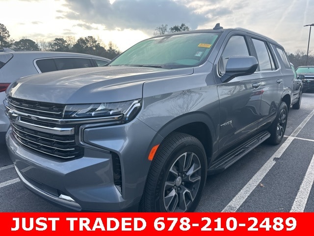 This 2021 Chevrolet Tahoe LT in Satin Steel Metallic features: 10-Way Power Driver & Passenger Seat Adjusters, 10.25" Color Touchscreen, 1st & 2nd Row Color-Keyed Carpeted Floor Mats, 2 USB Data Ports, Adaptive Suspension, Aluminum Wheels, Android Auto, Apple Carplay, Apple CarPlay/Android Auto, Auto-Dimming Inside Rear-View Mirror, Automatic temperature control, Backup Camera, Bluetooth w/ Audio Streaming, Bose High End Sound Package, Brake assist, Bright Front & Rear Door Sill Plates, Color-Keyed Carpeting Floor Covering, Driver & Front Outboard Passenger Airbags, Dual-Pane Power Panoramic Sunroof, Emergency communication system: OnStar and Chevrolet connected services capable, Floor Console w/Storage Area, Front & Rear Black Bowtie Emblems (LPO), Front dual zone A/C, Hands-Free Rear Power Programmable Liftgate, HD Radio, Heated Driver & Front Passenger Seats, Heated front seats, Heated Seats, Infotainment Display, Leather Seat Trim, Leather-Wrapped Steering Wheel, LED Daytime Running Lamps, LED Foglights, LED Projector Headlights, Memory Package, Memory Settings for Driver, Moonroof, Power driver seat, Power Liftgate, Power Liftgate, Power windows, Preferred Equipment Group 1LT, Premium audio system: Chevrolet Infotainment 3, Remote keyless entry, Remote Start, Remote Start, SiriusXM Radio w/360L, Sunroof/Moonroof, Universal Home Remote, Wheels: 20" x 9" Painted Aluminum.