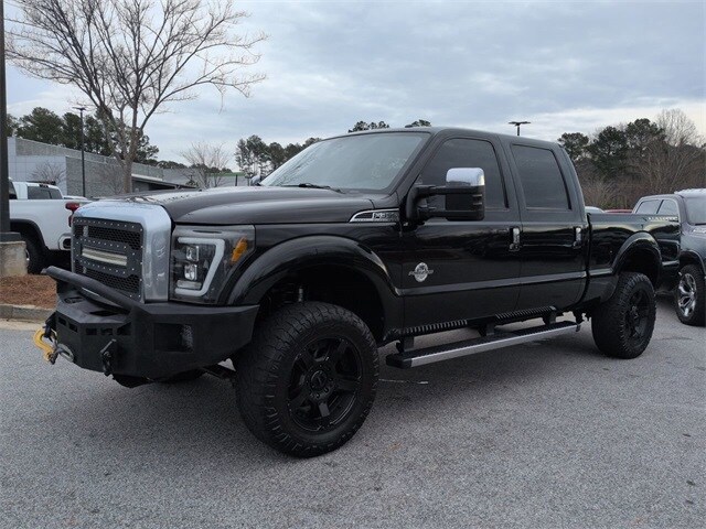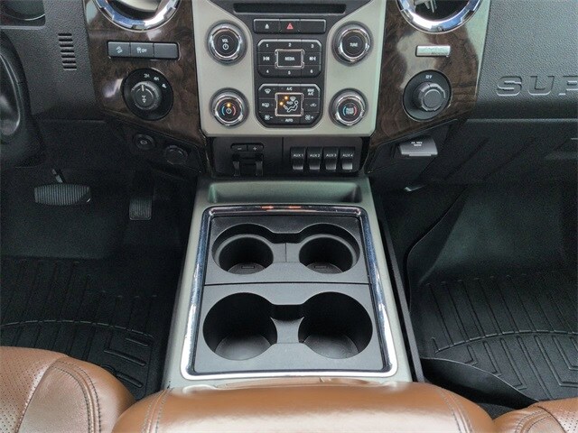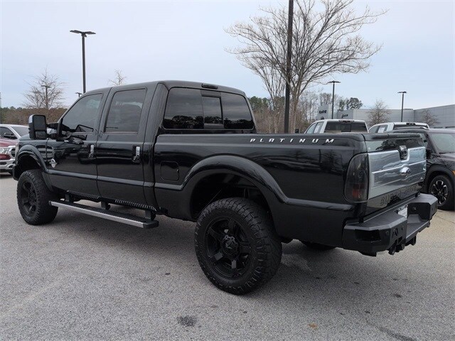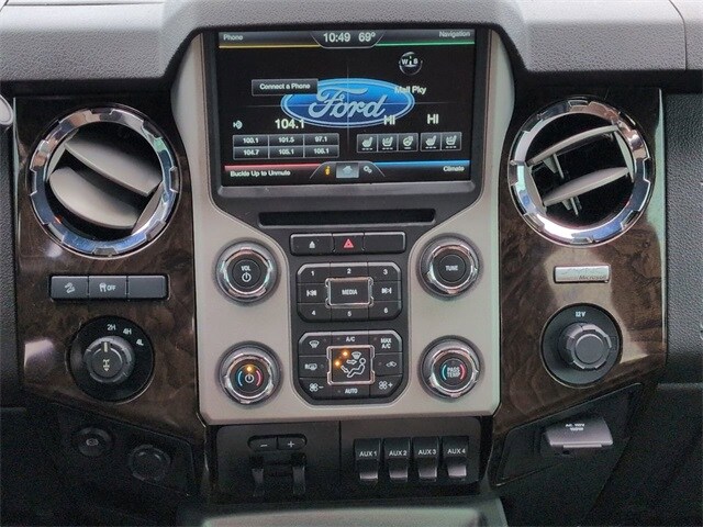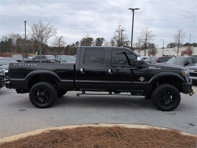This 2015 Ford F-350SD Platinum in Tuxedo Black Metallic features: 20" Platinum Cast Aluminum Wheels, 6.7L Powerstroke, 6" Angular Chrome Step Bars, Air Conditioning, Aluminum Wheels, Bluetooth, Body-Color Front & Rear Bumpers, Bright Chrome Door & Tailgate Handles, Chrome Exhaust Tip, Chrome Skull Caps on PowerScope Mirrors, Cold Weather Package, Colored Front & Rear Rancho Branded Shocks, Console, Door Trim, Dual Alternators (Total 357-Amps), Electronic Locking w/3.55 Axle Ratio, Engine Block Heater, Front Bucket Seats, Front dual zone A/C, FX4 Off-Road Package, FX4 Package, Good Brakes, Good Tires, Heated Rear Seats, Heated Seats, Hill Descent Control, Leather Seats, Leather steering wheel, Memory Package, Memory Power Adjustable Pedals, Moonroof, Multi Zone Climate Control, Navigation System, Order Code 618A, Package 618A, Panoramic Sunroof/Moonroof, Platinum Package, Platinum Package, Power door mirrors, Power driver seat, Power Moonroof, Power Sliding Rear Window, Power windows, Preferred Equipment Package, Premium Leather-Wrapped/Wood Steering Wheel, Radio: Premium Sony Audio w/Single CD/MP3, Rapid-Heat Supplemental Cab Heater, Remote keyless entry, Remote Start, Remote Start System, Security system, SiriusXM Satellite Radio, Skid Plate Package, Snow Plow Prep Package, Speed control, Sunroof/Moonroof, SYNC w/MyFord Touch & SYNC Services, Tailgate Step, Tailgate Step & Handle, Unique Platinum Leather 40/Console/40 Seats, Unique Satin Chrome Grille, Universal Garage Door Opener, Upfitter Switches (4), Voice Activated Navigation.