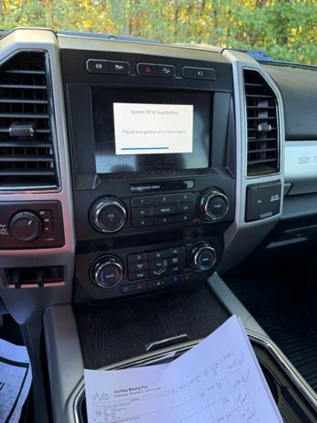 This 2021 Ford F-250SD Lariat in White features: 4D Crew Cab, Power Stroke 6.7L V8 DI 32V OHV Turbodiesel, 10-Speed Automatic, 4WD, 10 Speakers, 110V/400W Outlet, 4-Wheel Disc Brakes, 8" Color Touchscreen, ABS brakes, Adjustable pedals, AM/FM radio: SiriusXM, Auto Emergency Braking, Auto High-beam Headlights, Auto-dimming Rear-View mirror, Automatic temperature control, Backup Camera, Blind Spot Monitoring, BLIS w/ Cross Traffic Alert, Bluetooth w/ Audio Streaming, Brake assist, Compass, Delay-off headlights, Easy Entry®/Exit Memory Driver's Seat Feature, Electronic Stability Control, Electronic-Locking w/3.31 Axle Ratio, Emergency communication system: SYNC 3 911 Assist, Engine Block Heater, Exterior Parking Camera Rear, Flow-Through Console, Front Center Armrest, Front dual zone A/C, Front fog lights, Front Leather Seating Surfaces 40/Console/40, Front reading lights, Fully automatic headlights, FX4 Off-Road Package, GVWR: 10,000 lb Payload Package, Heated door mirrors, Heavy-Duty Alternator (240 Amp), Hill Descent Control, Illuminated entry, Lariat Package, Lariat Value Package, Leather Seats, Leather steering wheel, LED Box Lighting, LED Roof Clearance Lights, Low tire pressure warning, Memory Package, Memory Power-Adjustable Pedals, Off Road Package, Off-Road Specifically Tuned Shock Absorbers, Order Code 608A, Outside temperature display, Overhead console, Panic alarm, Parking Sensors, Power door mirrors, Power Heated/Ventilated Driver Seat w/Memory, Power Heated/Ventilated Passenger Seat, Power Mirror Package, Power Package, Power passenger seat, Power Running Boards, Power Sliding Rear Window, PowerScope Trailer Tow Mirrors w/Heat, PowerScope Trailer Tow Mirrors w/Memory, Pre Collision Assist w/ AEB, Preferred Equipment Package, Premium Audio Package, Premium Sound Package, Radio data system, Radio: B&O System by Bang & Olufsen, Rear CHMSL Camera, Rear Parking Sensors, Rear seat center armrest, Rear step bumper, Remote keyless entry, Remote Start, Remote Start System, Reverse Brake Assist, Reverse Sensing, Security system, SiriusXM Radio, Skid Plate Package, Speed control, Split folding rear seat, Steering wheel mounted audio controls, SYNC 3 Communications & Entertainment System, Telescoping steering wheel, Tilt steering wheel, Tow Package, Traction control, Trailer Package, Trip computer, Turn signal indicator mirrors, Unique FX4 Off-Road Box Decal, Upfitter Switches (6), Variably intermittent wipers, Wheels: 20" Bright Machined Cast Aluminum.