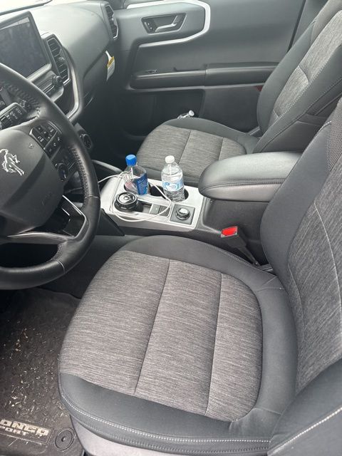 This 2023 Ford Bronco Sport Big Bend in Cactus Gray features: 4D Sport Utility, 1.5L EcoBoost, 8-Speed Automatic, 4WD, **LOCAL TRADE**, 4-Wheel Disc Brakes, 4G LTE Wi-Fi Hotspot Credit, 8" Color Touchscreen, ABS brakes, AM/FM radio: SiriusXM, Android Auto, Apple Carplay, Auto High-beam Headlights, Automatic temperature control, Backup Camera, Bluetooth w/ Audio Streaming, Brake assist, Compass, Convenience Package, Delay-off headlights, Electronic Stability Control, Emergency communication system: SYNC 3 911 Assist, Equipment Group 200A, Four wheel independent suspension, Front Center Armrest, Front Driver & Passenger Seatback Zipper Pockets, Fully automatic headlights, Heated door mirrors, Heated Front Bucket Seats, Illuminated entry, Intelligent Access (Lock/Unlock), Leather-Wrapped Steering Wheel, LED Fog Lamps, LED Foglights, Low tire pressure warning, Outside temperature display, Overhead console, Panic alarm, Parking Sensors, Power door mirrors, Power Mirror Package, Power Package, Power steering, Power windows, Radio data system, Rear Parking Sensors, Rear seat center armrest, Rear window wiper, Remote keyless entry, Reverse Brake Assist, Reverse Sensing, Security system, SiriusXM, Speed control, Speed-sensing steering, Speed-Sensitive Wipers, Split folding rear seat, Steering wheel mounted audio controls, SYNC 3 Communications & Entertainment System, SYNC 3/Apple CarPlay/Android Auto, Telescoping steering wheel, Tilt steering wheel, Traction control, Trip computer, Unique Cloth Front Bucket Seats, Universal Garage Door Opener (UGDO), Wheels: 17" Carbonized Gray-Painted Aluminum, Wireless Charging Pad, Wireless Charging Pad.