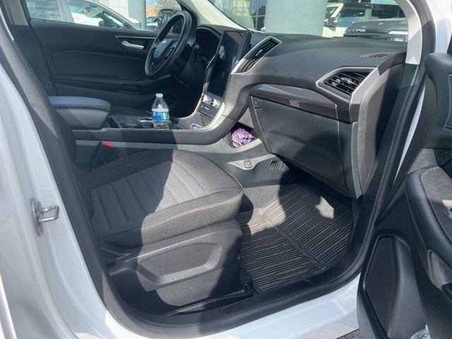 This 2024 Ford Edge SE in Oxford White features: 4D Sport Utility, EcoBoost 2.0L I4 GTDi DOHC Turbocharged VCT, 8-Speed Automatic, AWD, **LOCAL TRADE**, 12" LCD Productivity Touchscreen, 4-Wheel Disc Brakes, 4G WiFi Hotspot Telematics, 6 Speakers, ABS brakes, AM/FM radio: SiriusXM with 360L, Auto High-beam Headlights, Automatic temperature control, Backup Camera, Brake assist, Compass, Delay-off headlights, Electronic Stability Control, Emergency communication system: SYNC 4 911 Assist, Equipment Group 100A, FordPass Connect, Four wheel independent suspension, Front Bucket Seats, Front Center Armrest w/Storage, Front dual zone A/C, Fully automatic headlights, Illuminated entry, Low tire pressure warning, Outside temperature display, Overhead console, Panic alarm, Power door mirrors, Power Mirror Package, Power Package, Power steering, Power windows, Push Button Start, Rear seat center armrest, Rear window wiper, Remote keyless entry, SiriusXM w/360L, Speed control, Speed-Sensitive Wipers, Split folding rear seat, Spoiler, Steering wheel mounted audio controls, SYNC 4A w/Enhanced Voice Recognition, Telescoping steering wheel, Tilt steering wheel, Traction control, Trip computer, Wheels: 18" Sparkle Silver-Painted Aluminum.